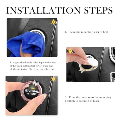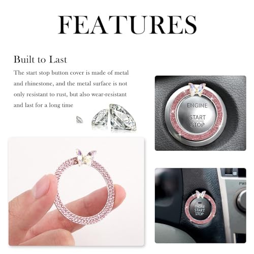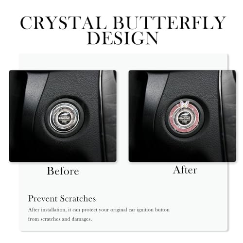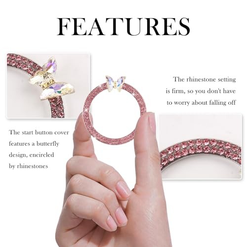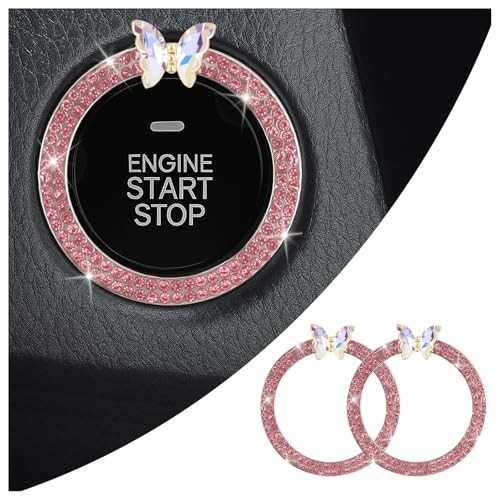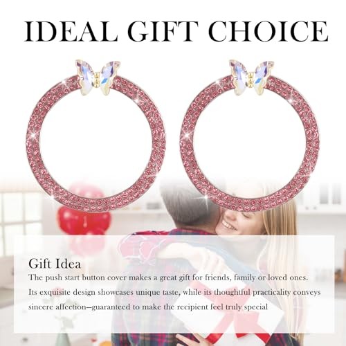 2PCS Bling Car Push Start Button Cover Decoration Ring,Shiny Push to Start Pink