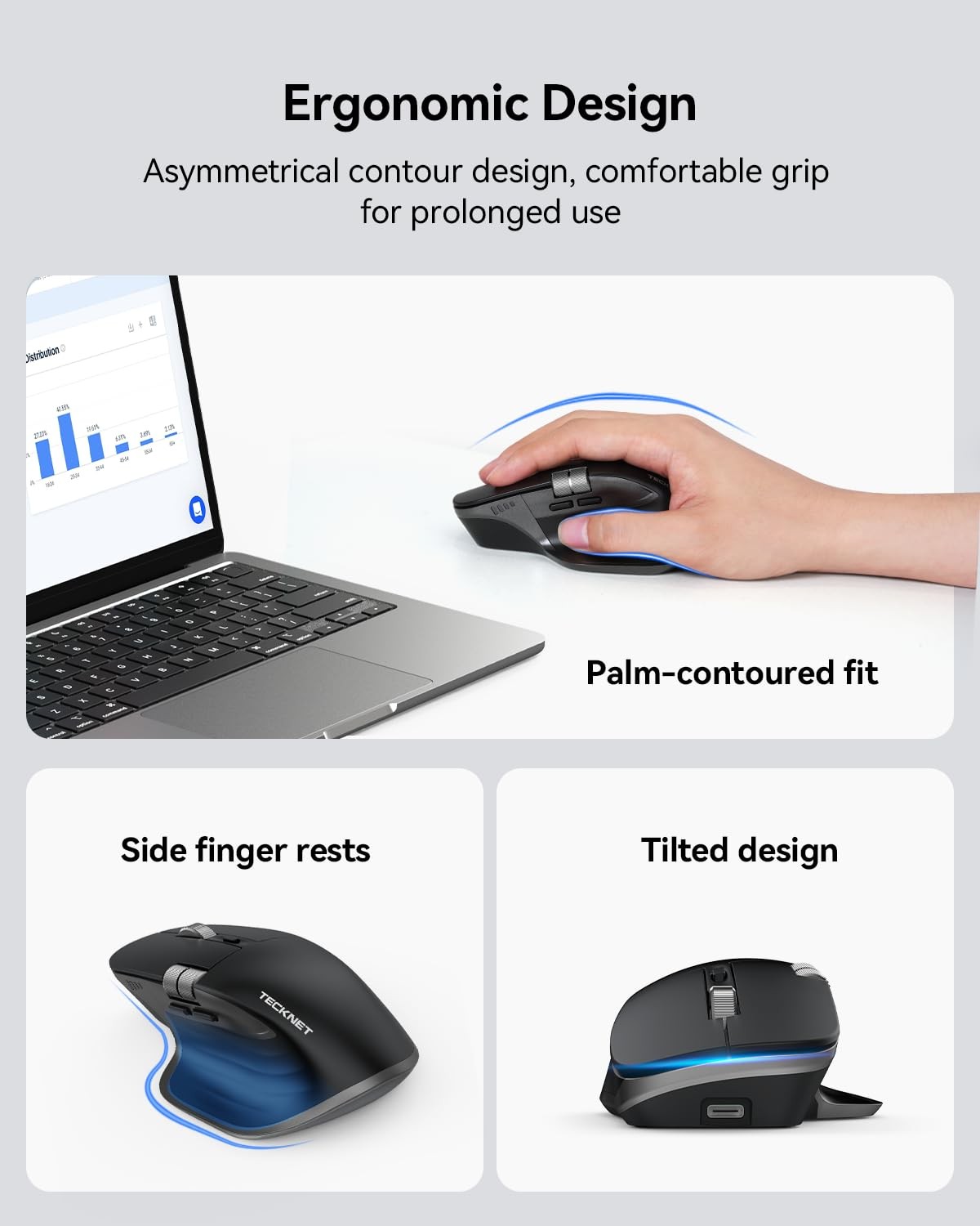 Wireless Mouse, Bluetooth Mouse BT5.3/5.0 2.4G Rechargeable Ergonomic Opt...