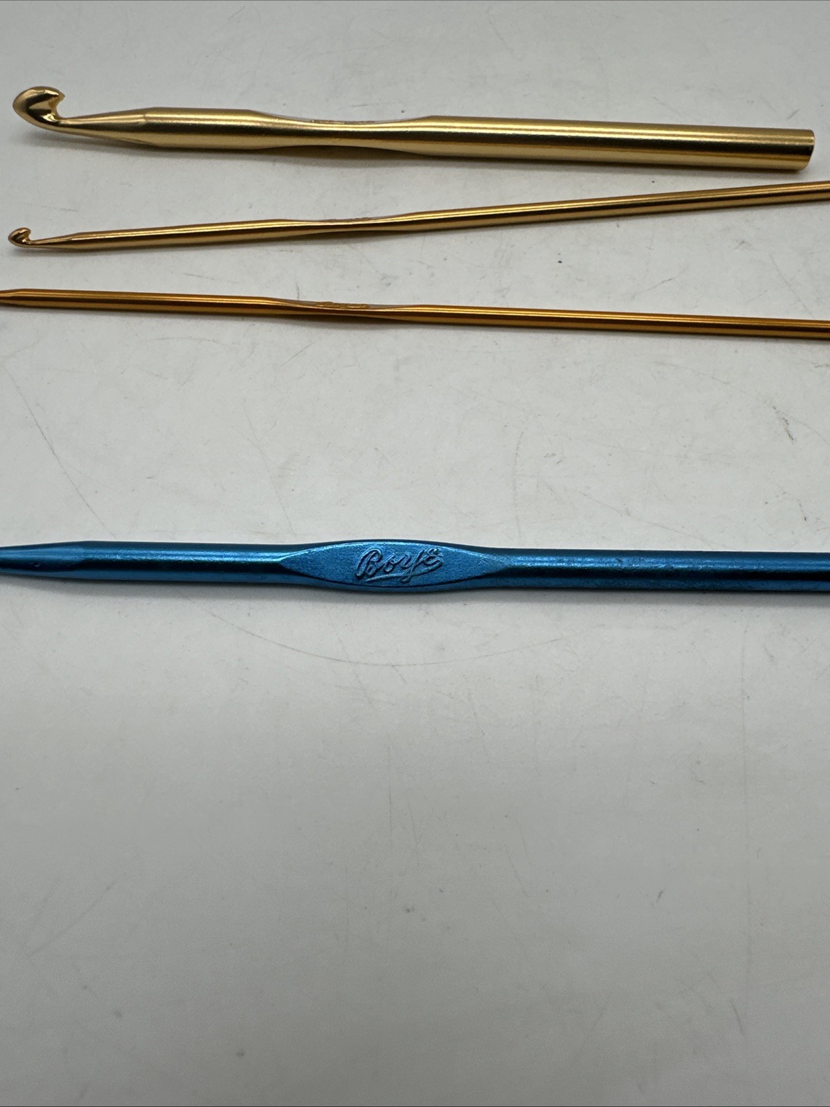 BOYE Vintage Crochet Hooks Lot of 4 Made in USA Colored Aluminum Various Sizes