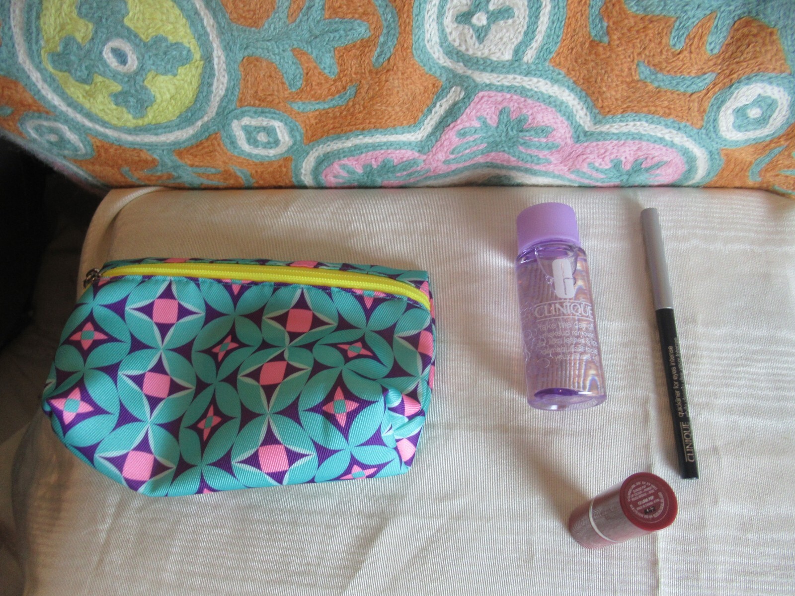 Set Includes: Eyeliner, Lipstick, Makeup Remover, Travel Cosmetics Bag