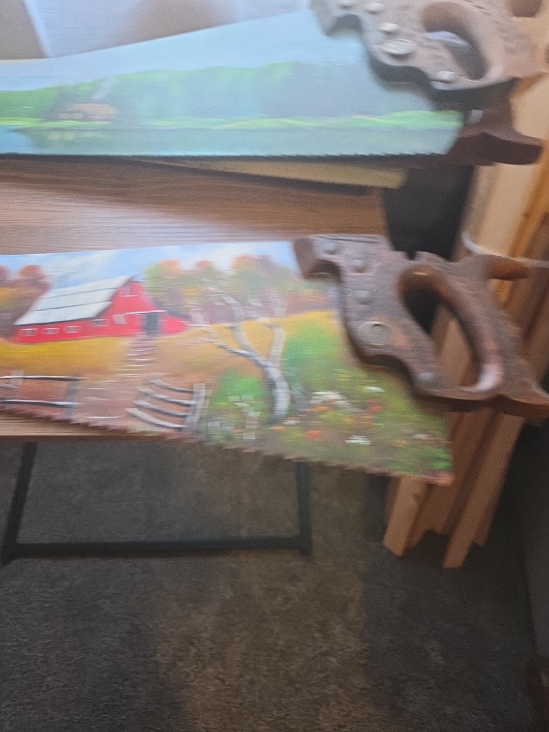 как выглядит Gorgeous Hand Painted Antique/Vintage Handsaw. Country rustic Barn Farm Scenery фото