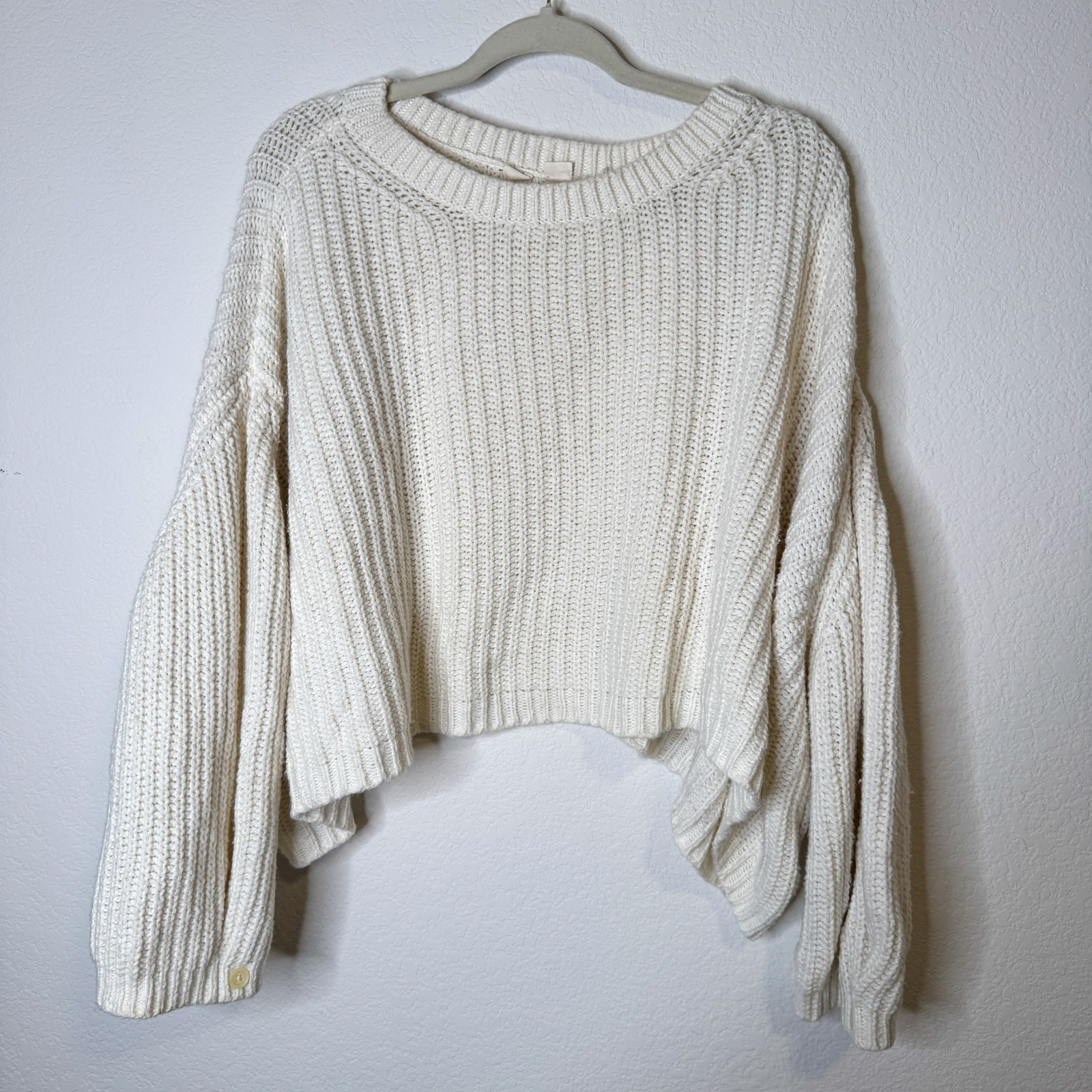 как выглядит Anthropologie Moth Cream White Cropped Sweater фото