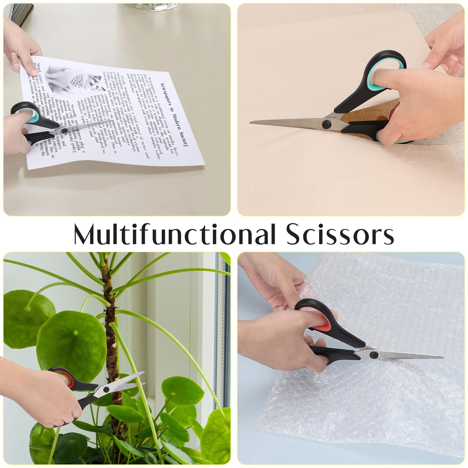 3 Pack All Purpose Scissors 8.3 Inch Sharp Stainless Steel Soft-Grip Handle