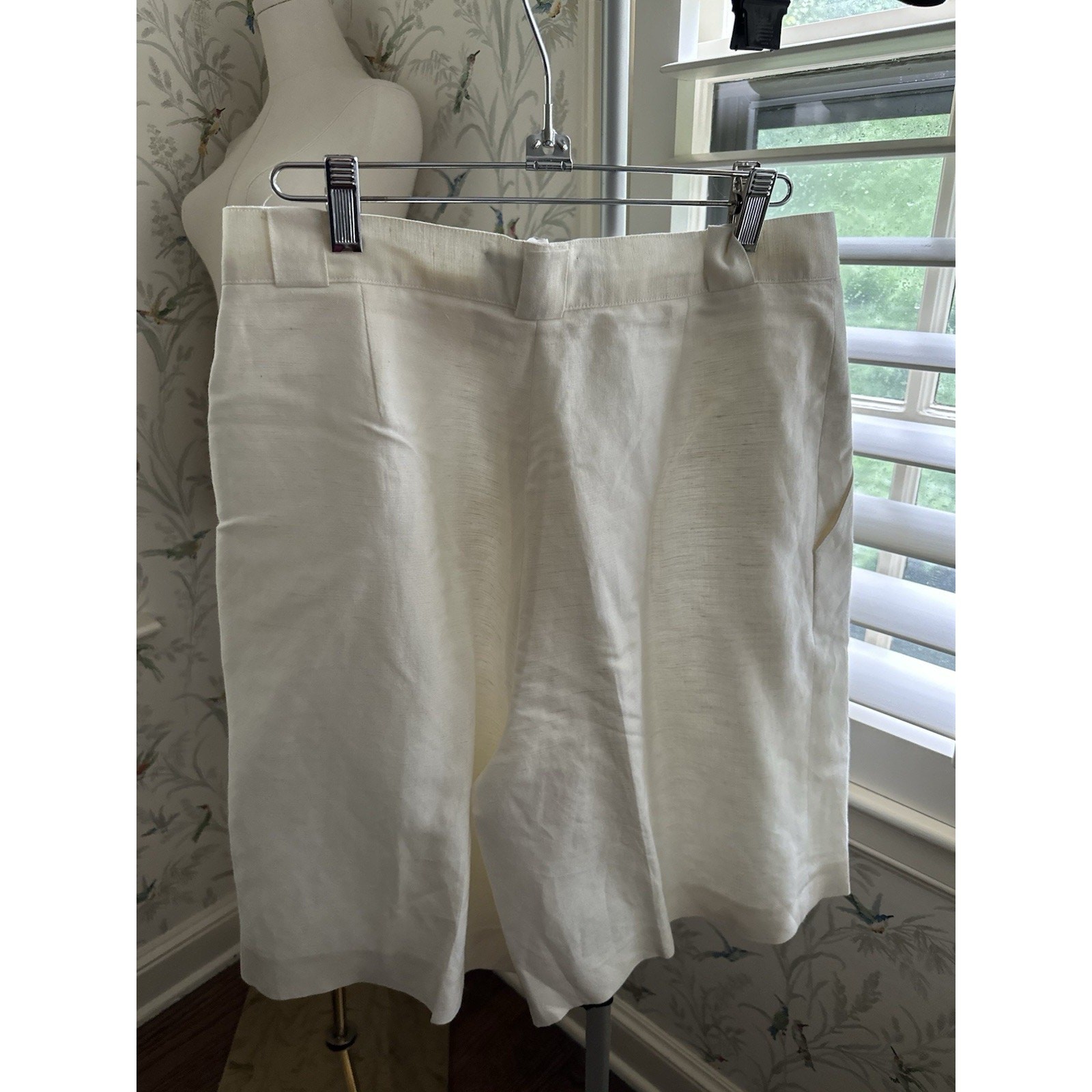 как выглядит Birch Hill Pleated Buckle Classic Cream Linen Shorts Size 10 Vintage фото