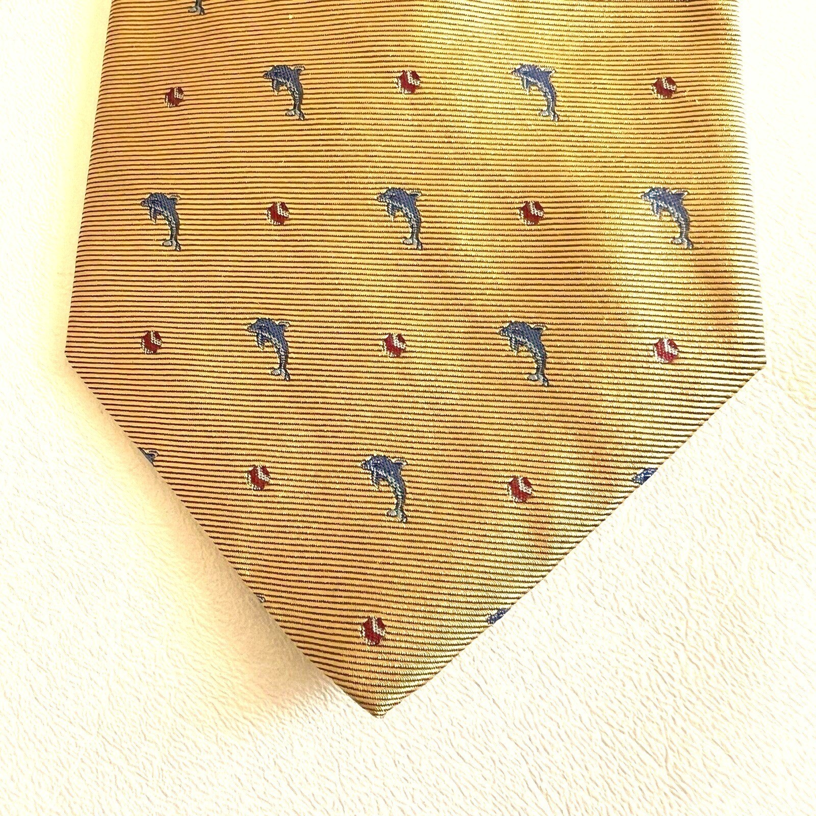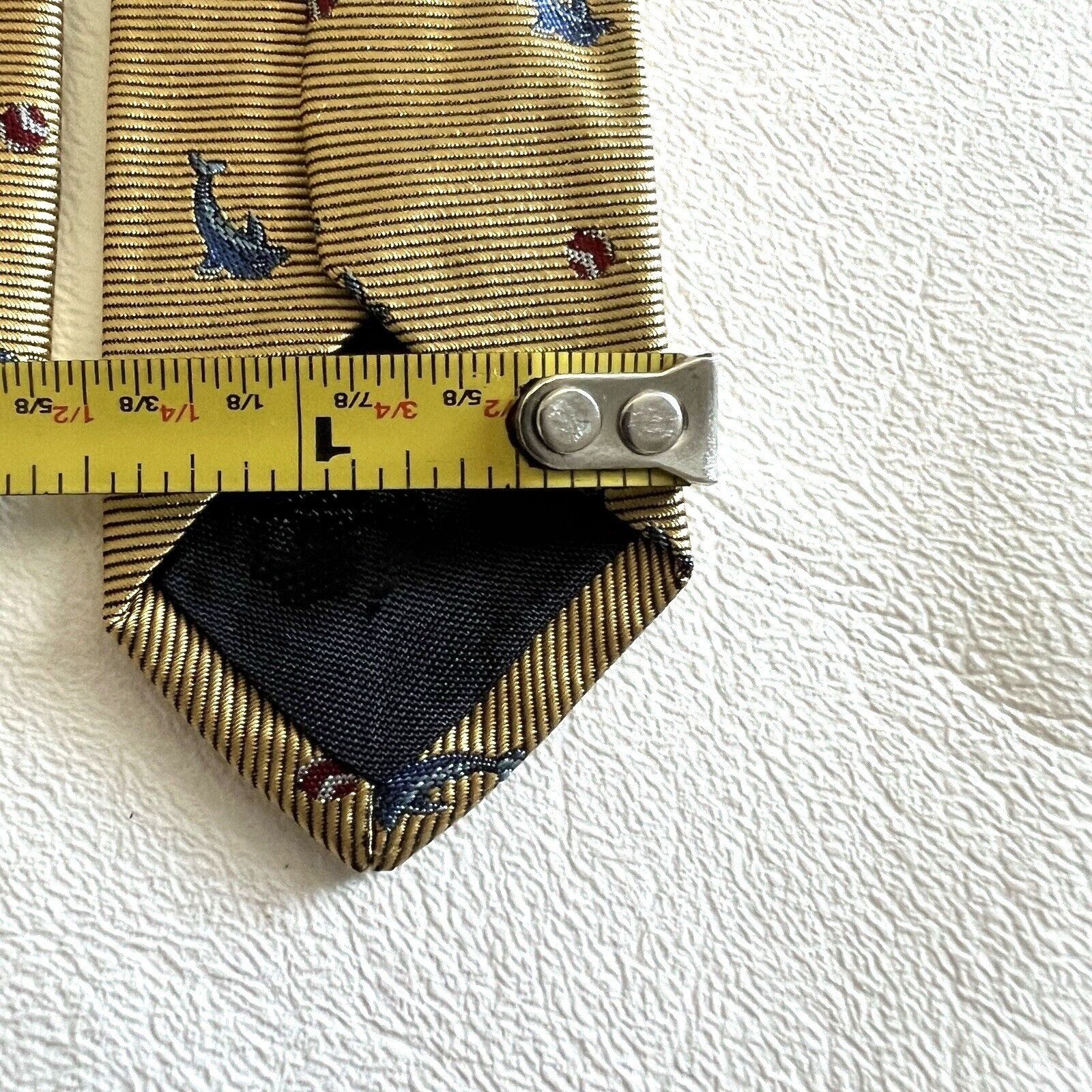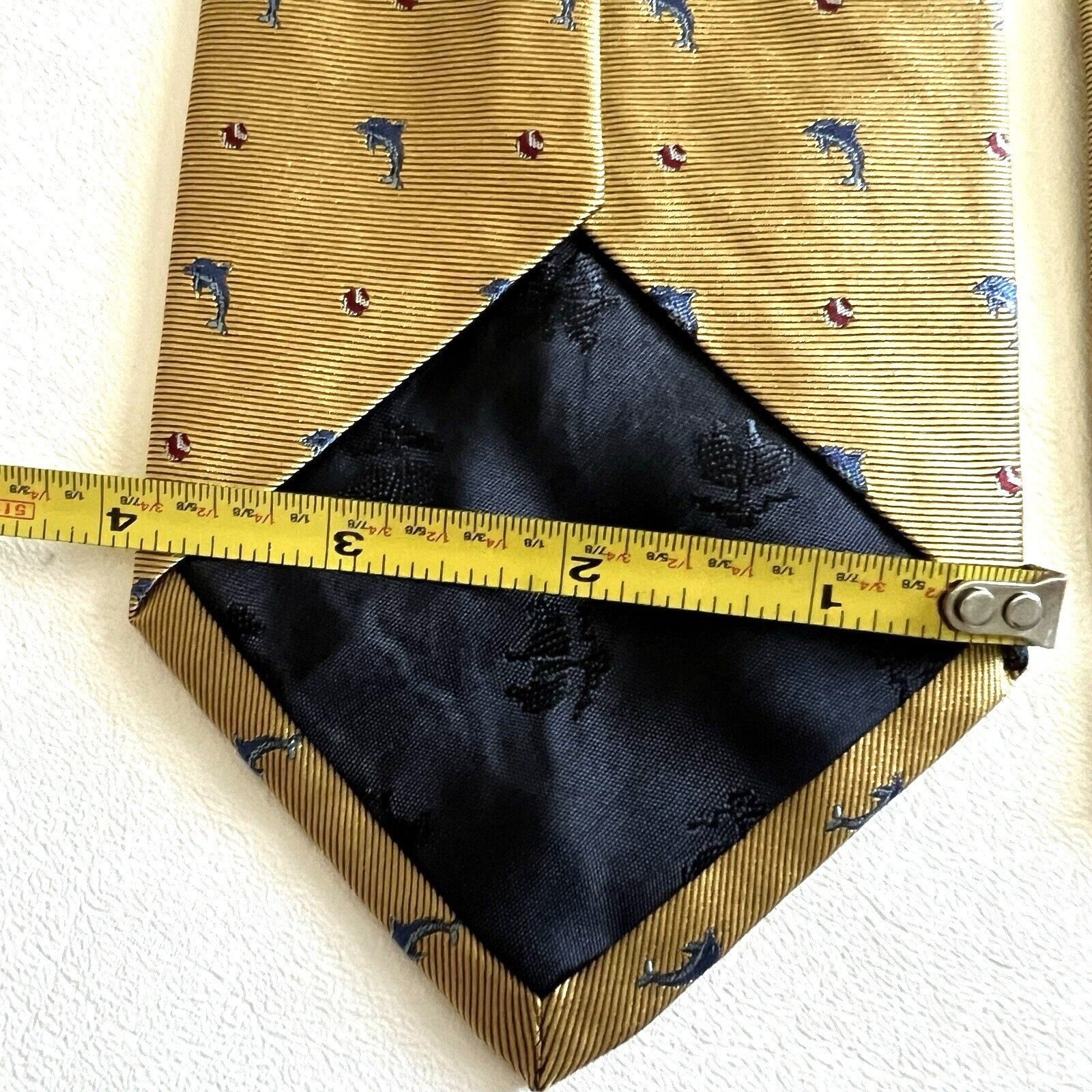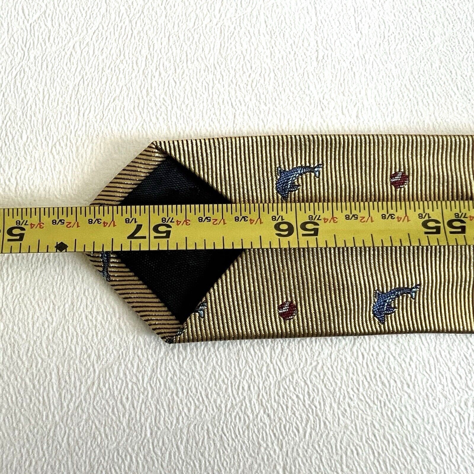 Vintage Gold Silk Novelty Fish Tie Marlin Nautical Preppy Mens Classic 57 inches