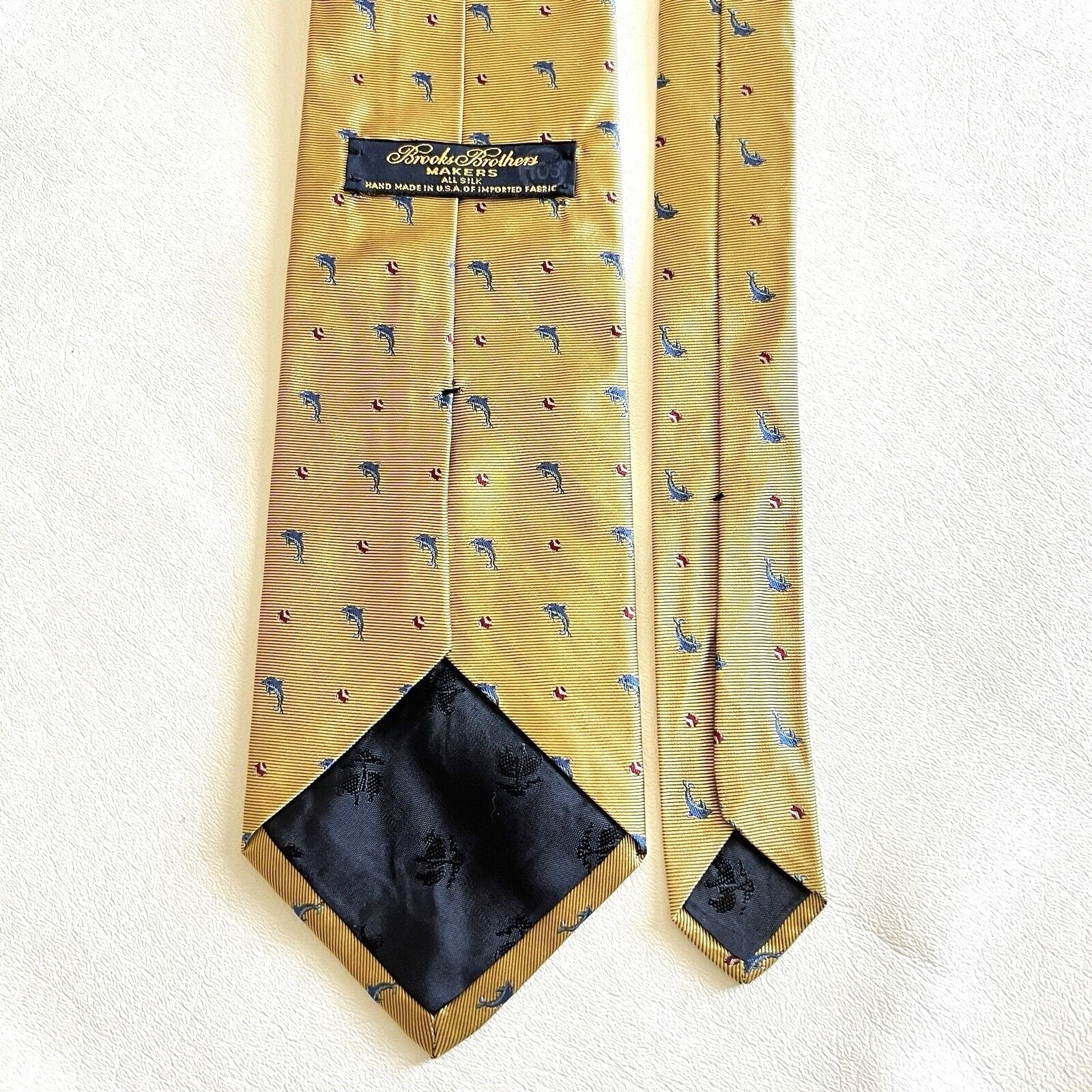 как выглядит Vintage Gold Silk Novelty Fish Tie Marlin Nautical Preppy Mens Classic 57 inches фото