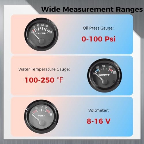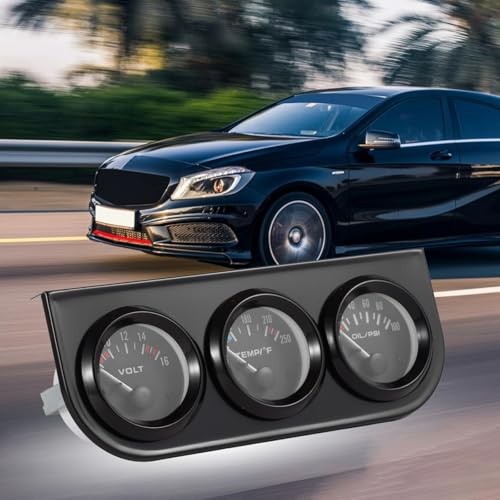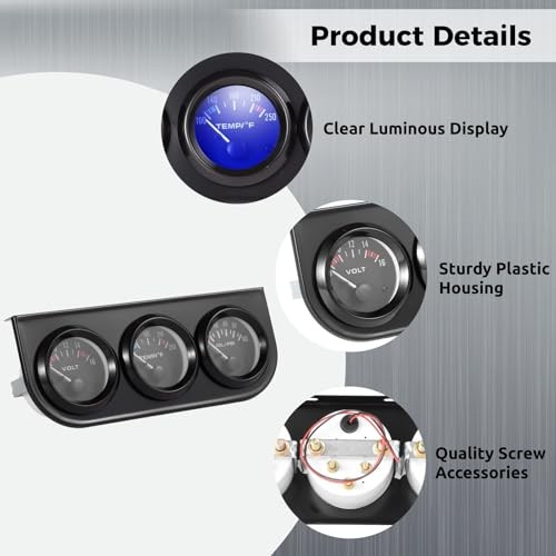 Triple Gauge Kit, 3 in 1 Car Meter, Voltmeter Water Temperature Gauge Black