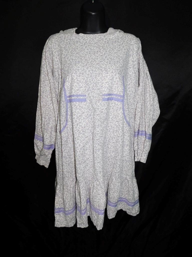 как выглядит Alaska Native Eskimo Kuspuk 2X Purple Floral Tunic Shirt Dress Hooded Ruffle Hem фото