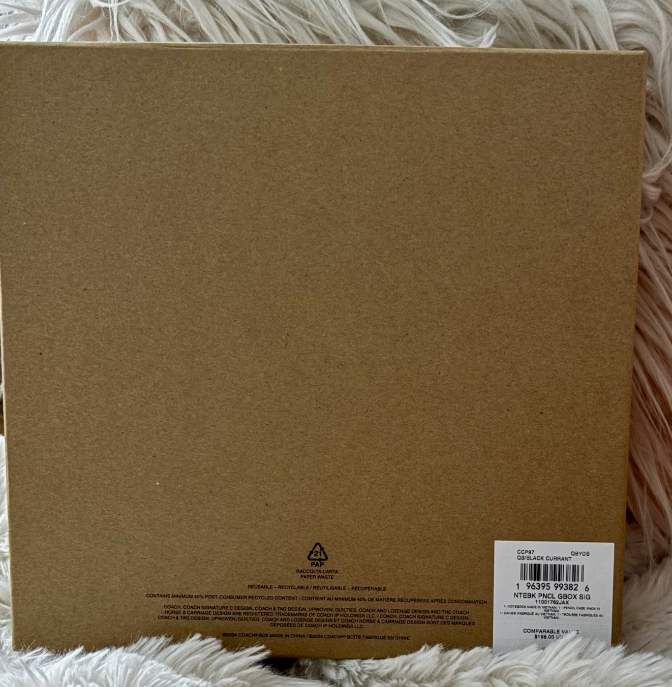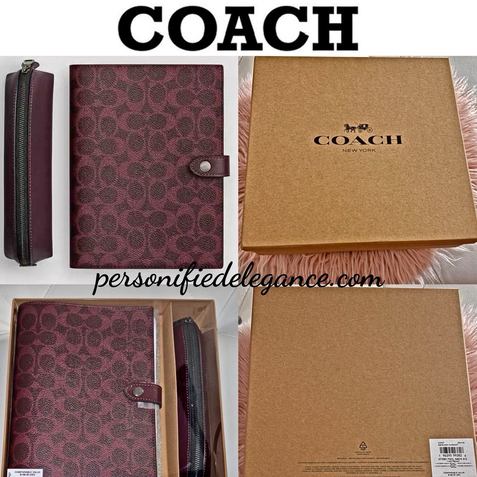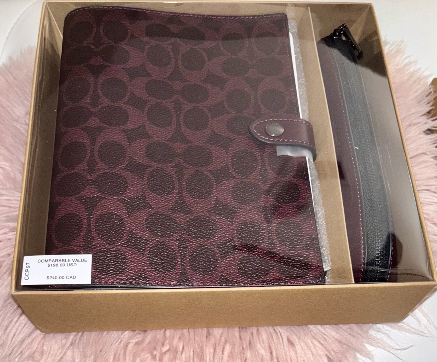 NEW Coach Black Currant Signature Print Boxed Notebook and Pencil Case Set