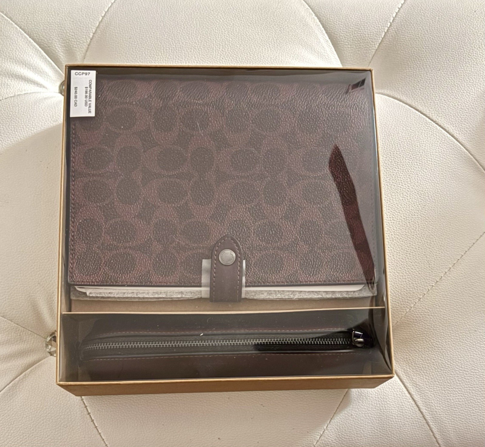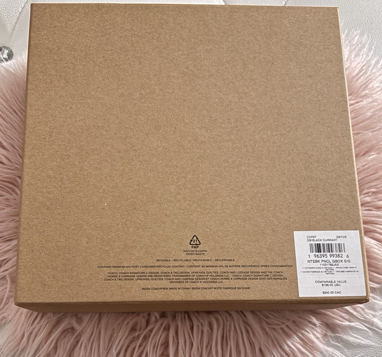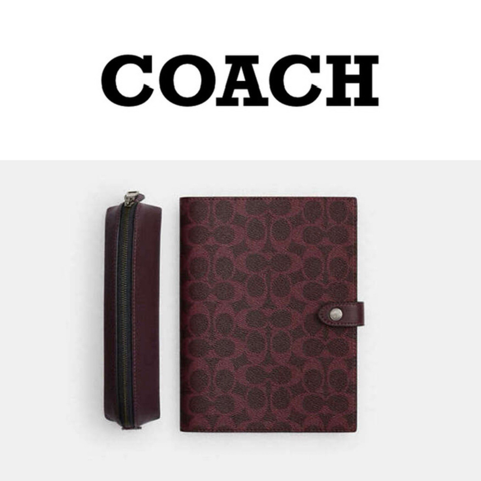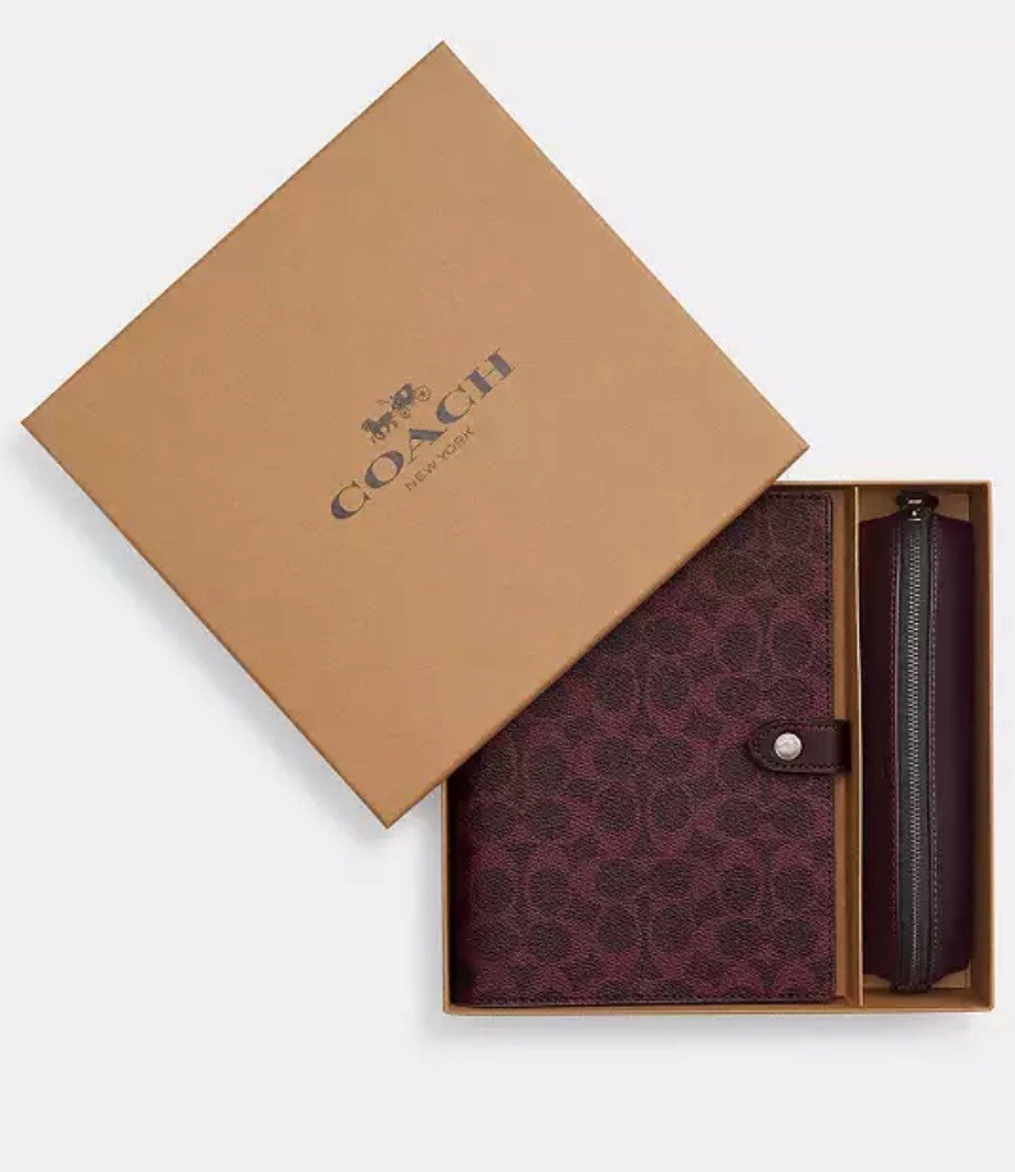 NEW Coach Black Currant Signature Print Boxed Notebook and Pencil Case Set