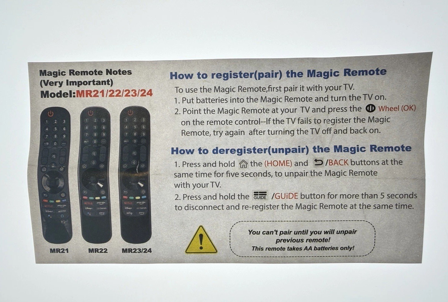 LG TV Magic Voice TV Remote Control MR24GN For 2019-2024 G4 C3 C4 B4 QNED OLED