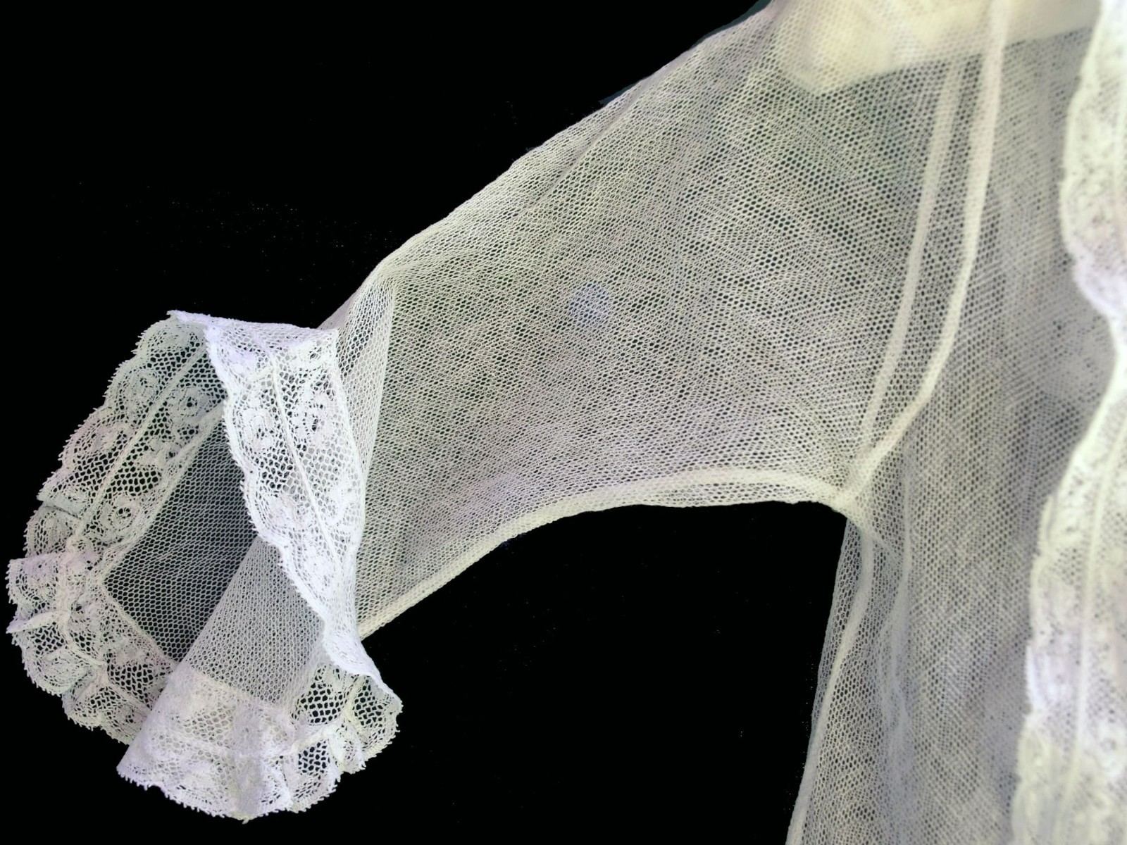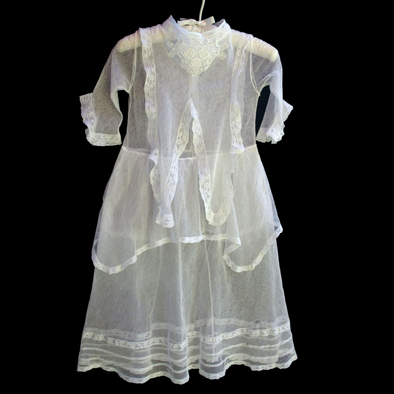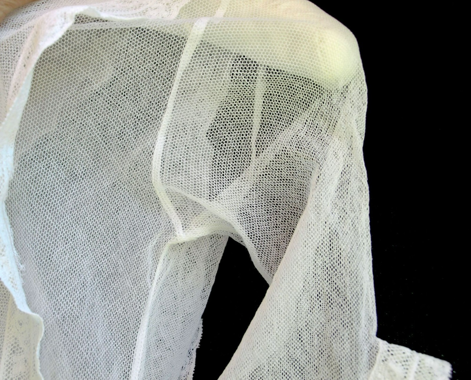 как выглядит Edwardian White Embroidered Sheer Net Lace Dress Young Woman Girl 25" Waist 36.5 фото