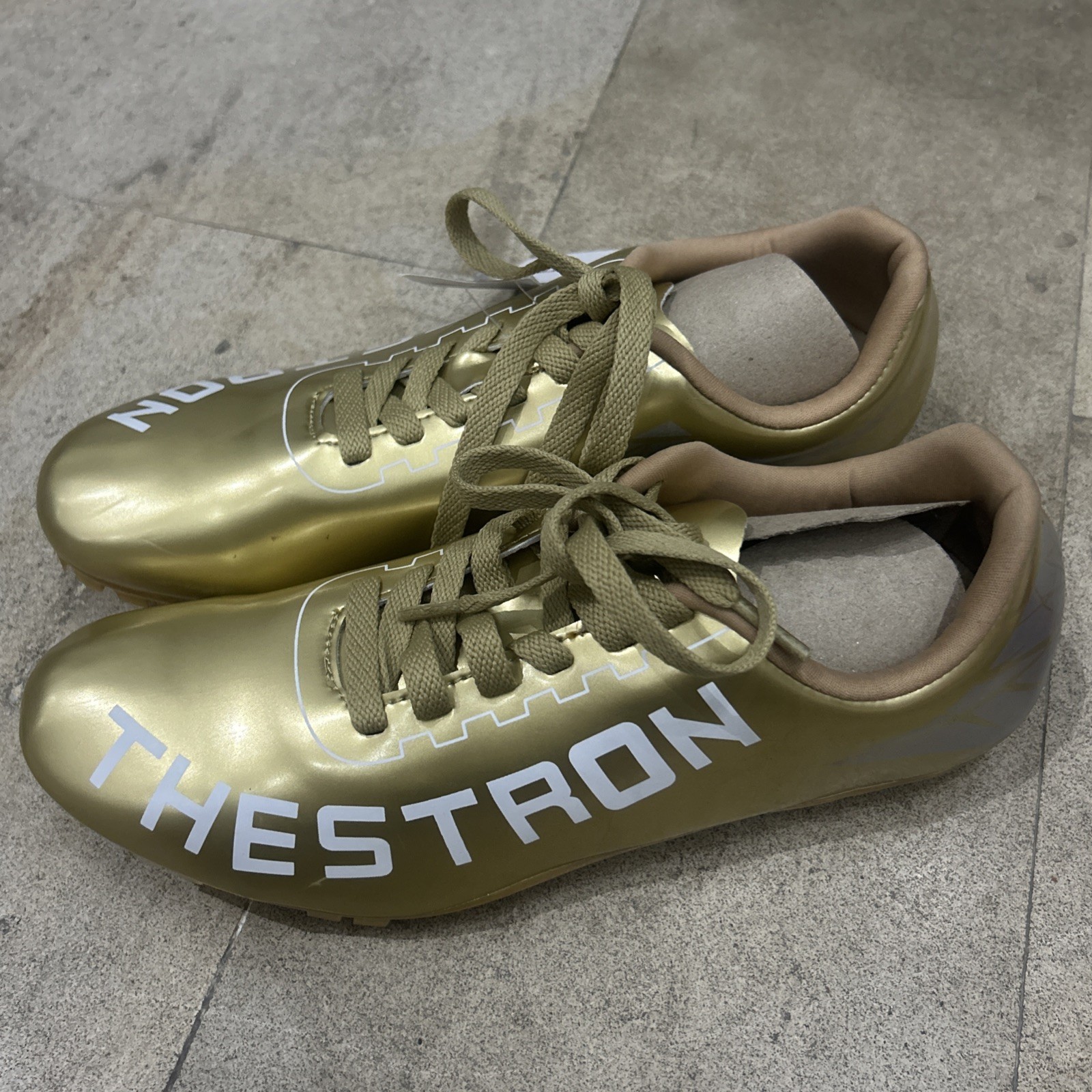 NEW WITH TAGS Thestron Sprint Pro Superstar Spike Track Shoes Mens Eur 42 Gold