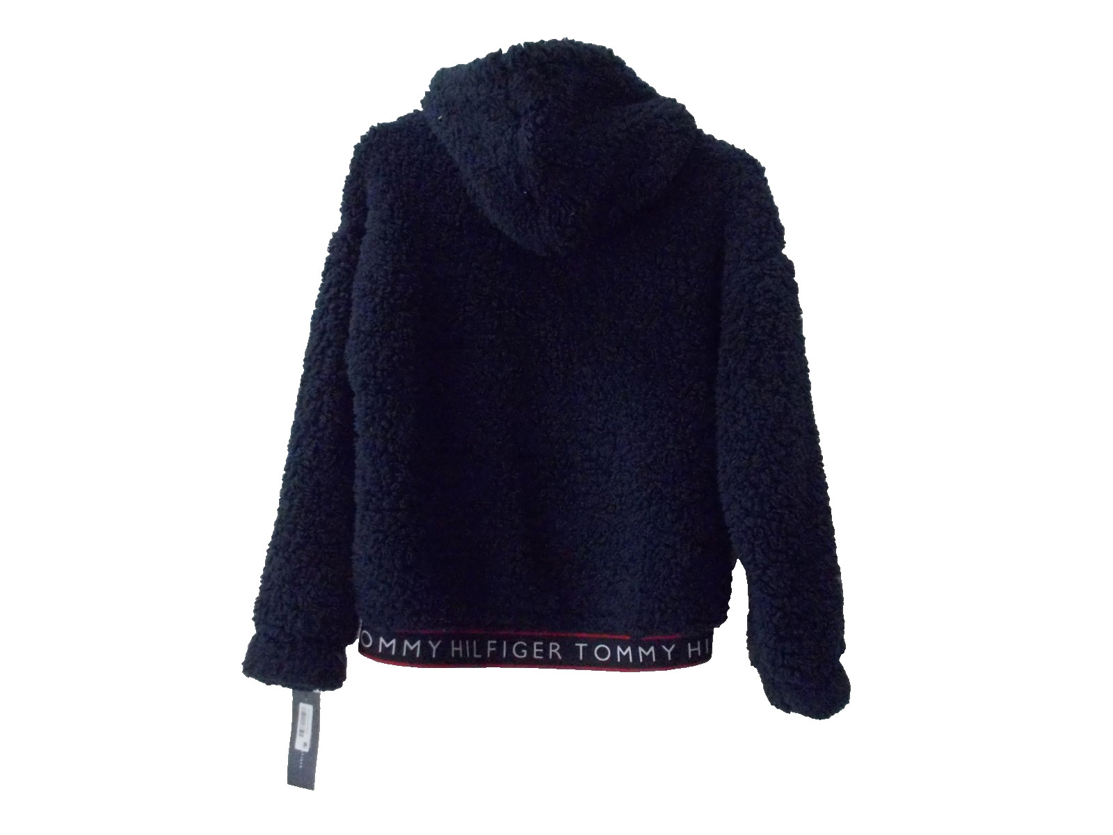 как выглядит NWT TOMMY HILFIGER Girls Navy Blue Faux Sherpa Zip Front Hoodie Jacket L 12/14 фото