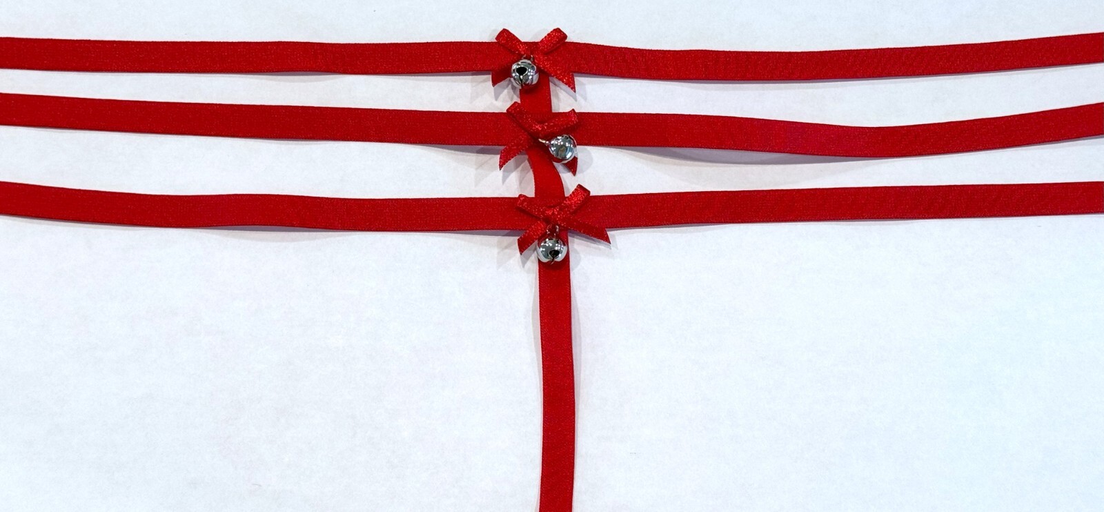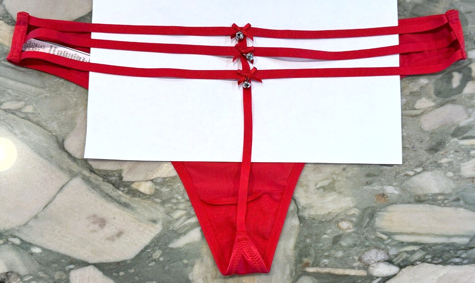 NEW Victoria Secret Dream Angels Triple Strap Bells Bows V-String Panty Red - XL