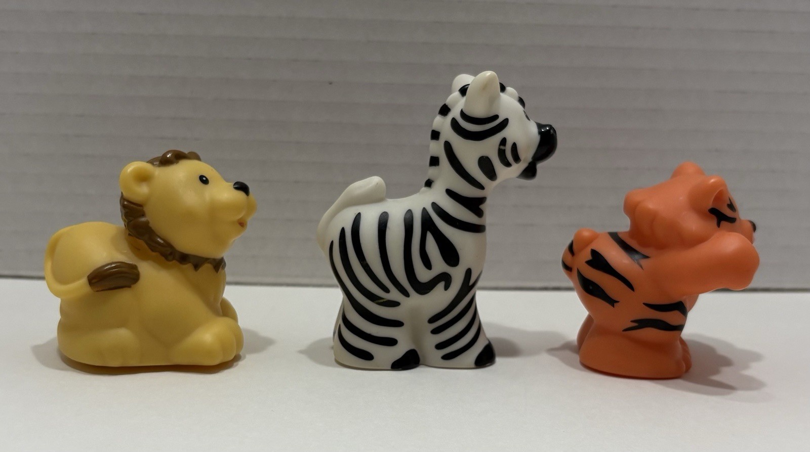 Lot of 3pcs Fisher Price Little People Zoo Animals Lion, Tiger, Zebra