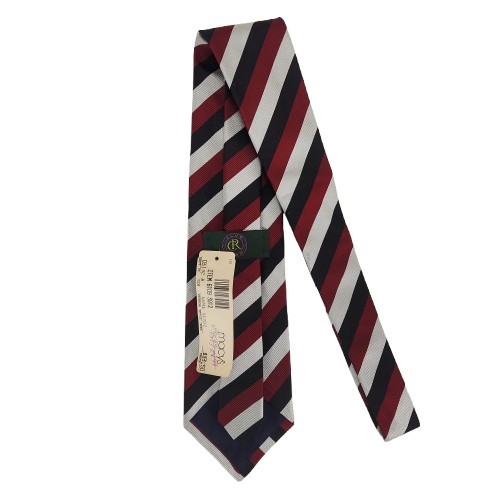 NWT Vtg. Club Room Red Black White Classic Stripe 100 Silk Tie