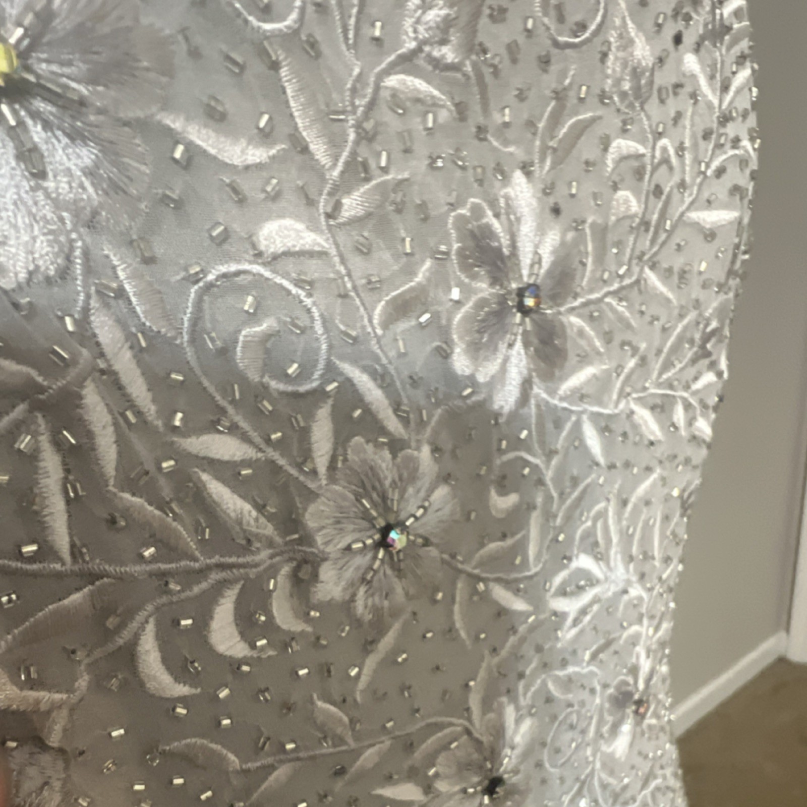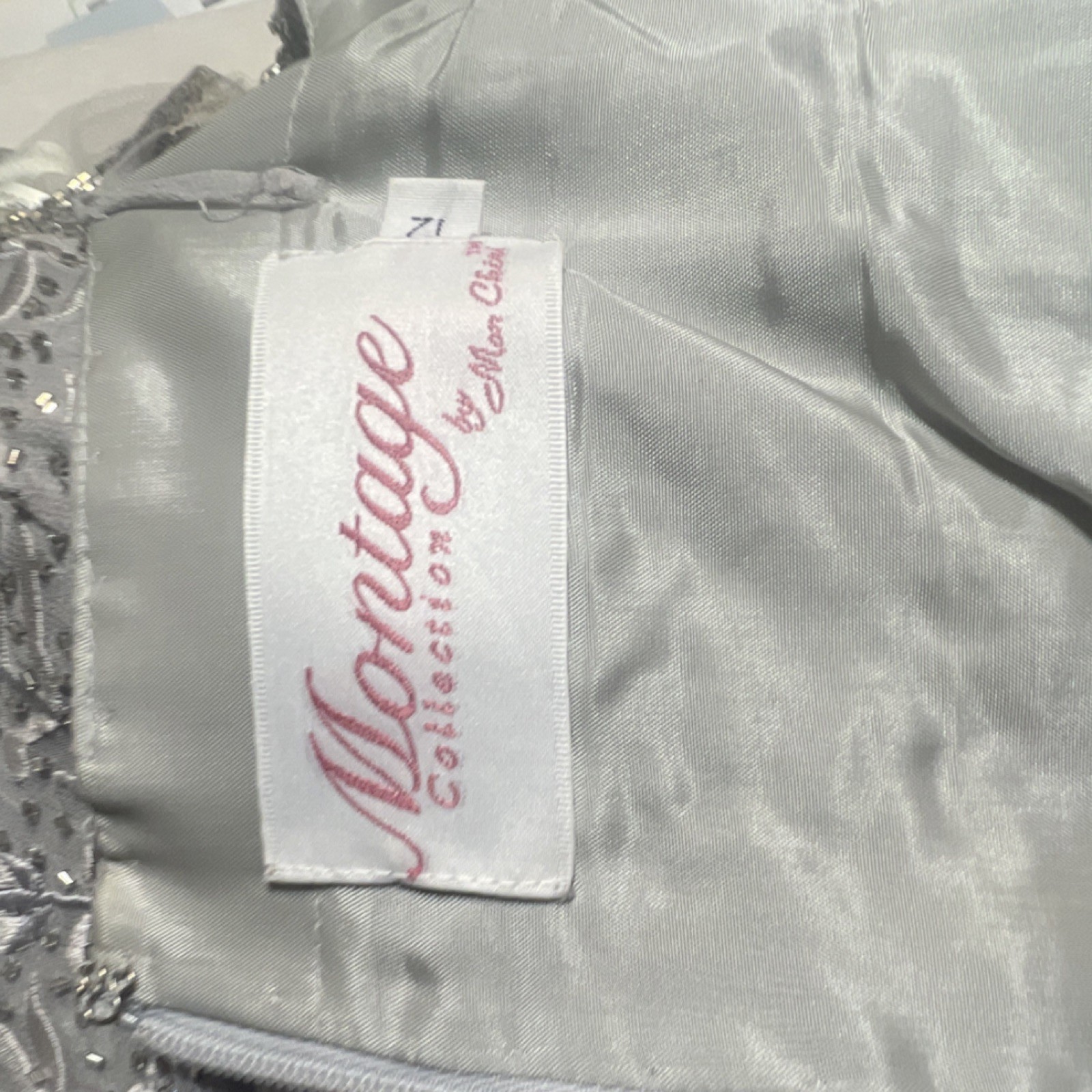как выглядит Montage Collection by Mon Cheri Silver Beaded Floral 100 Silk Dress Size 12 фото