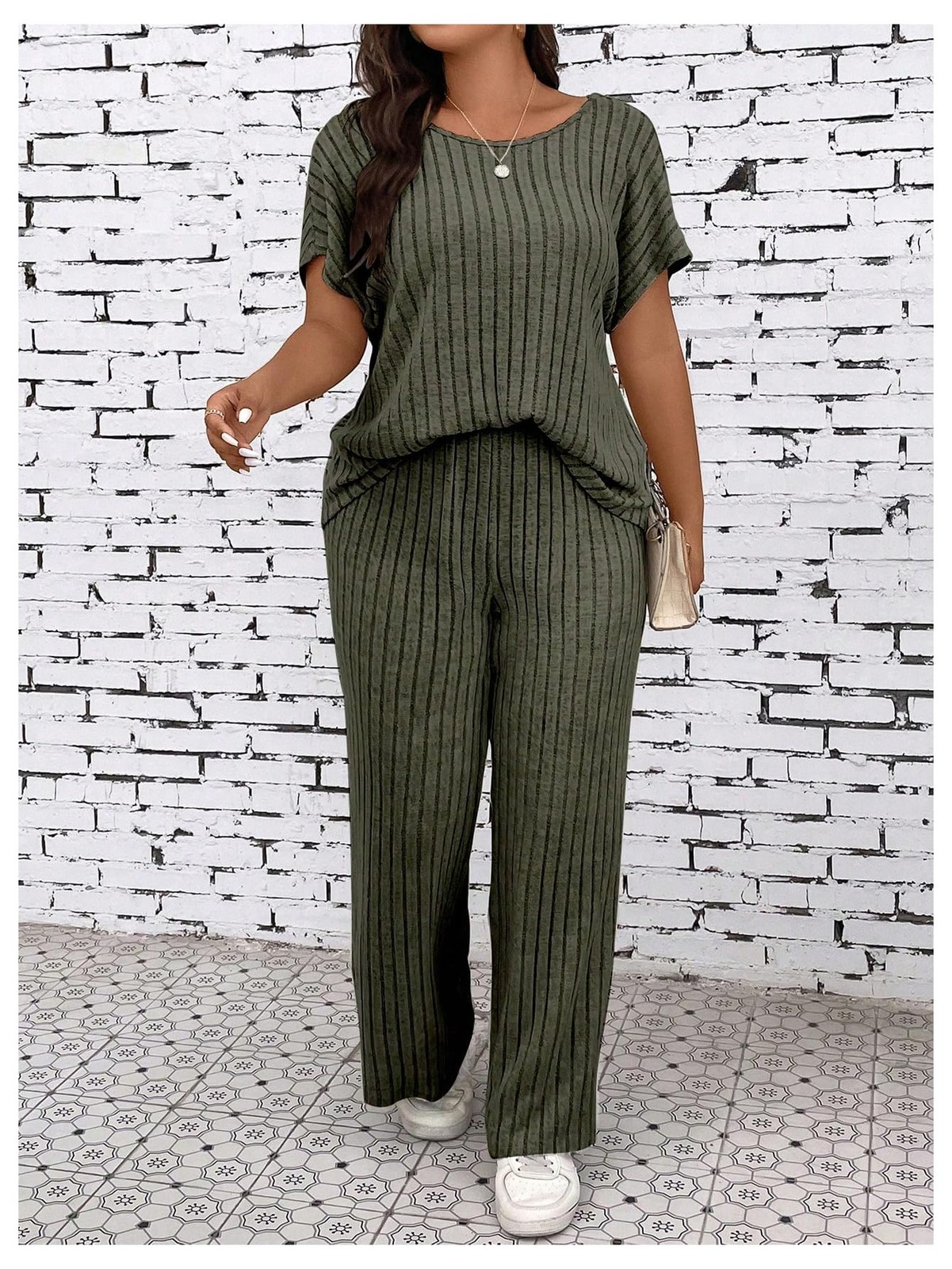 как выглядит Womens Plus Size Short Sleeve Tee Shirt Wide Leg Pants 2 Piece Tracksuit Arm... фото