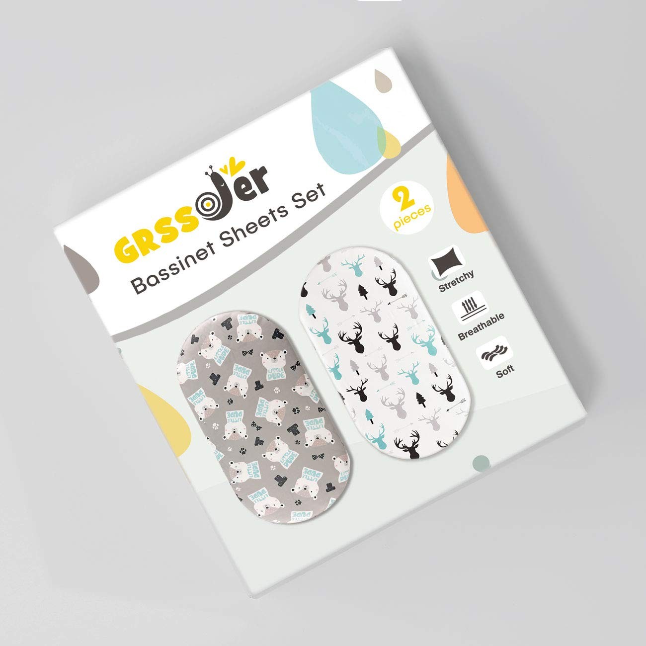 Stretchy Ultra Soft Fitted Bassinet Sheet Set 2 Pack, Breathable and Universa...