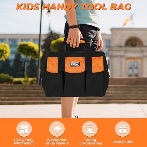 24 PCS Kids Real Tool Set with Tool Bag, Boys Small Real Hand Tools Orange