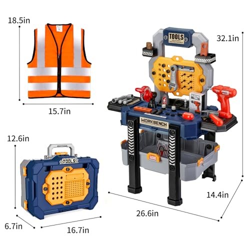 Kids Tool Bench with Realistic Tools and Electric Drill, Suitable for 3-5 Blue