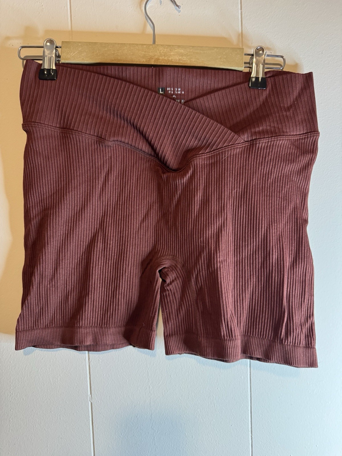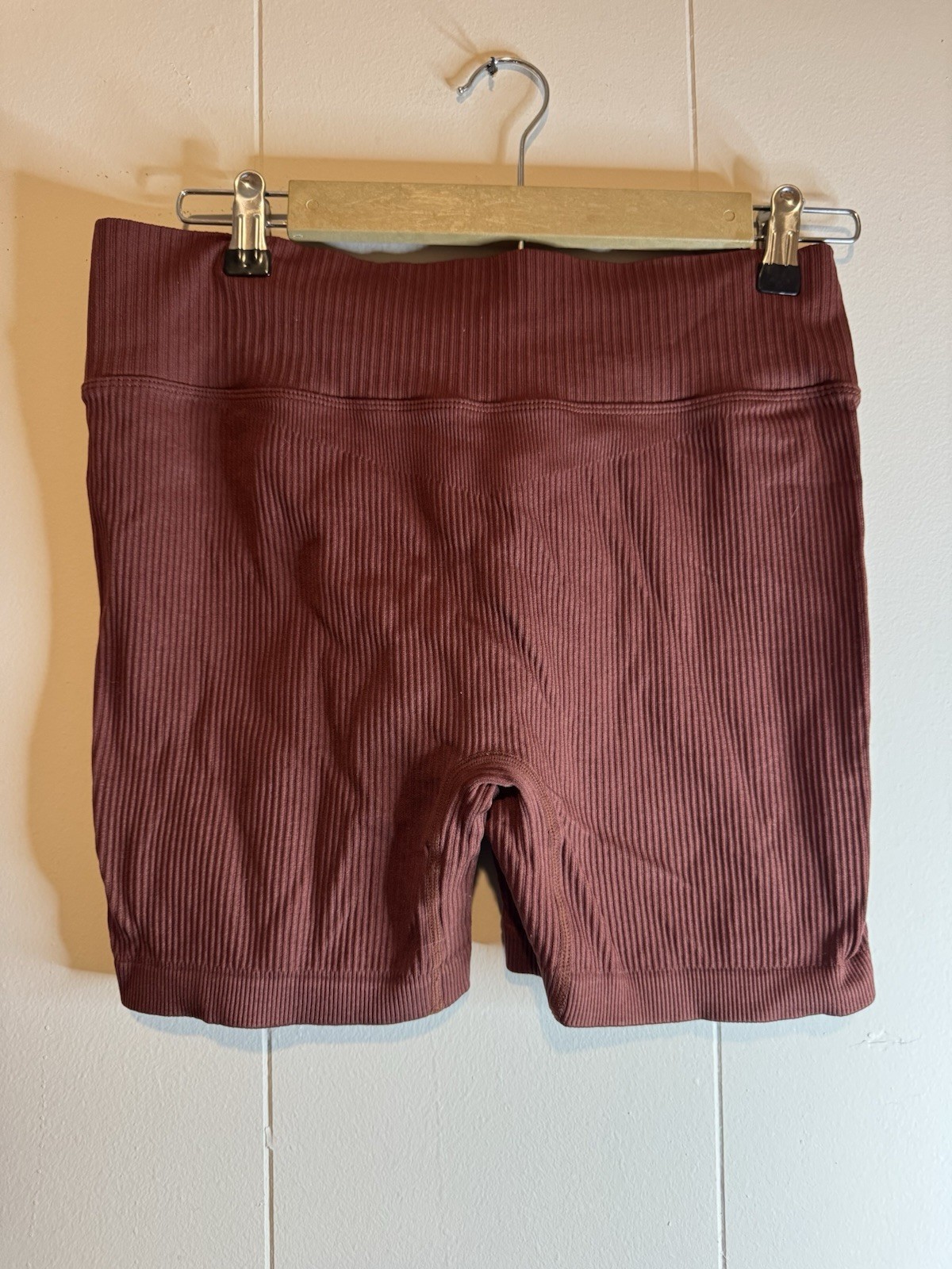 как выглядит Brown Ribbed 2 Piece Womens Activewear Set - Crop Bra Shorts Size L фото