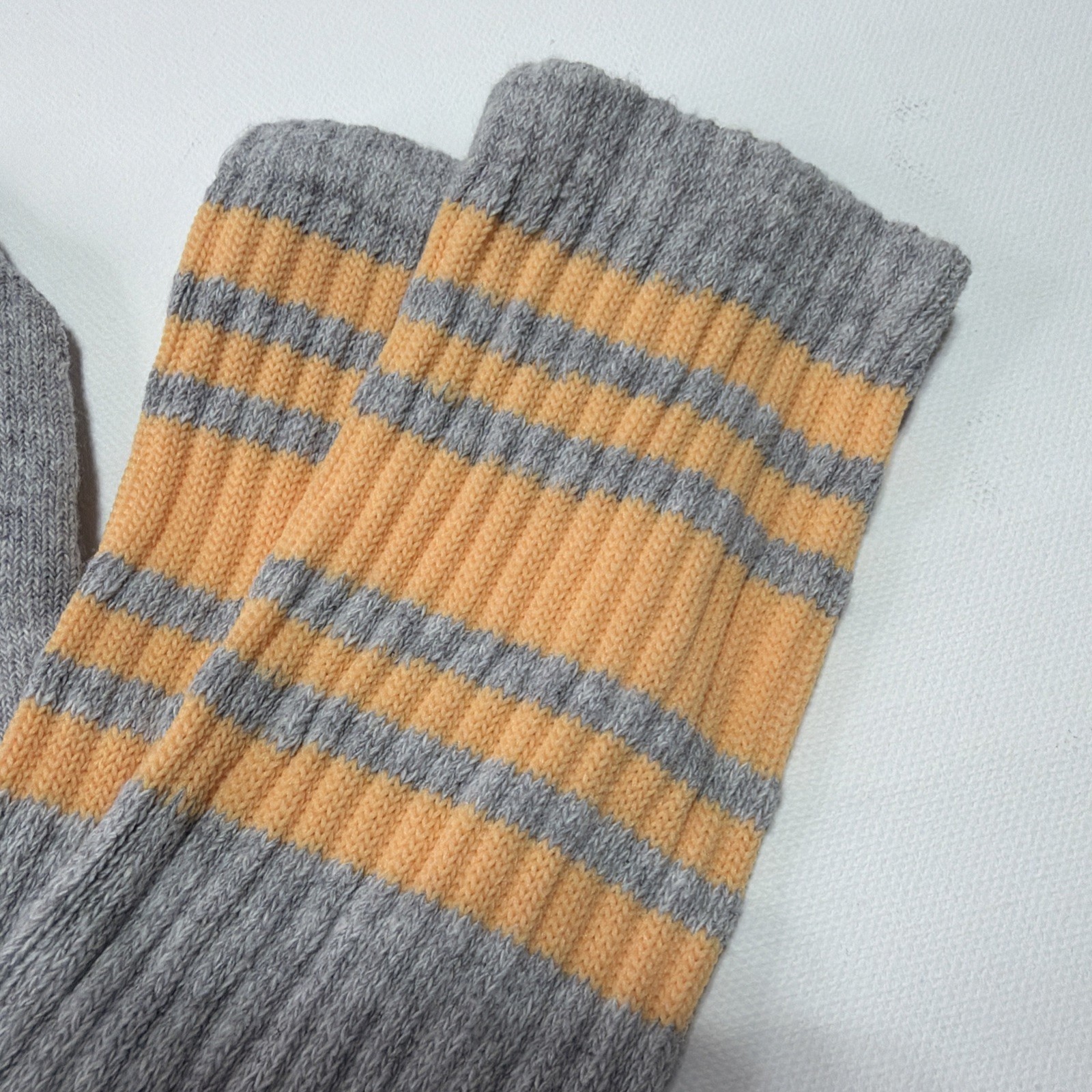 Vintage Tube Socks 20 Gray Peach 1980's Acrylic Blend Striped Soft NOS 90's