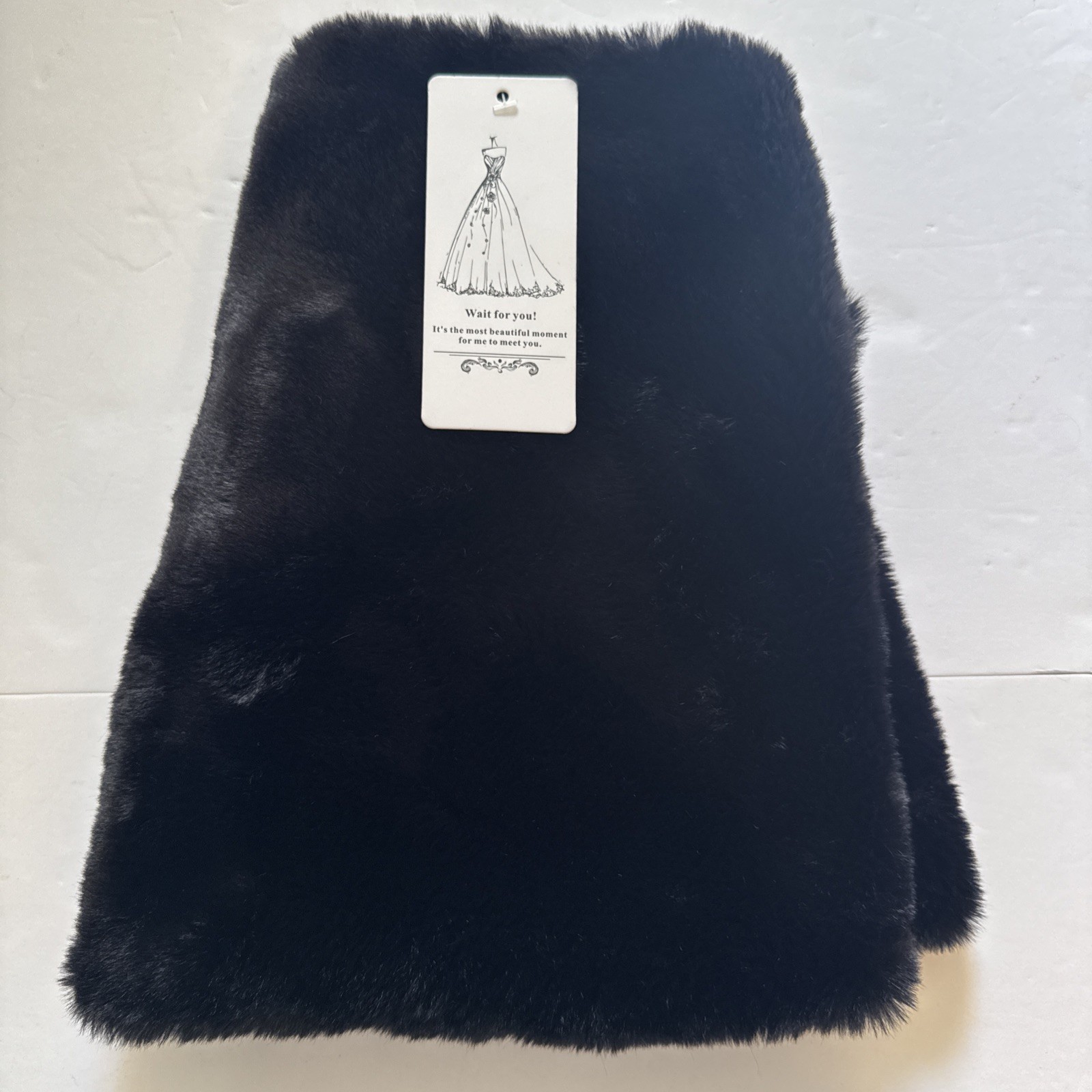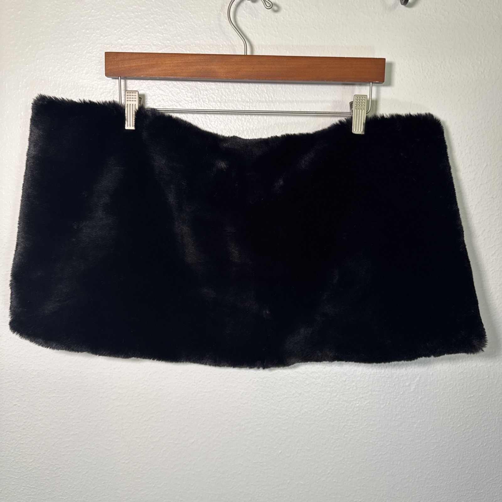 как выглядит Womens Black Faux Fur Stole Shrug Wrap Satin Lined Tie Formal Prom Event New фото