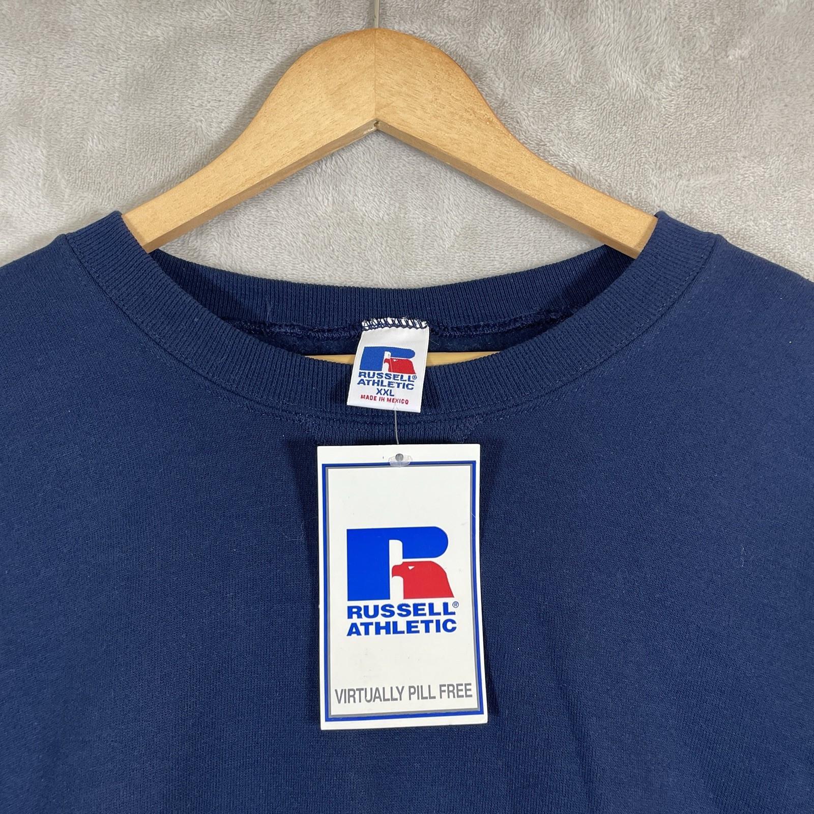 как выглядит DEADSTOCK Vtg 90s Russell Athletic Sweatshirt XXL Navy Blue Blank Crewneck NEW фото
