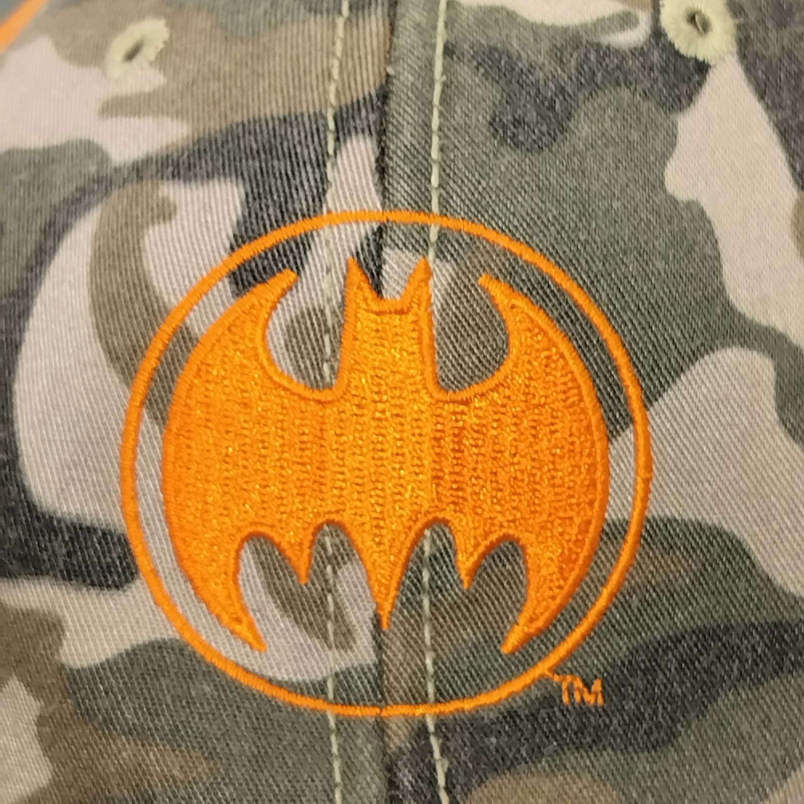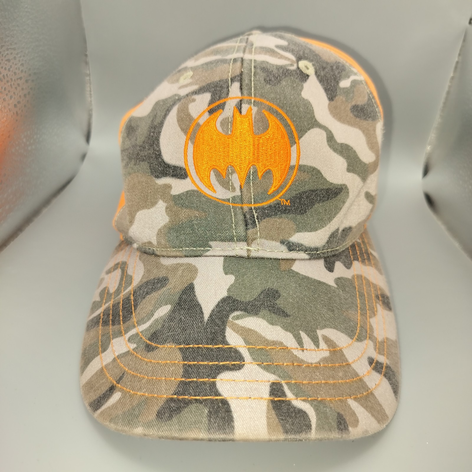 как выглядит Batman Camouflage Baseball Cap Hat Orange Logo Adjustable DC Comics Superhero фото