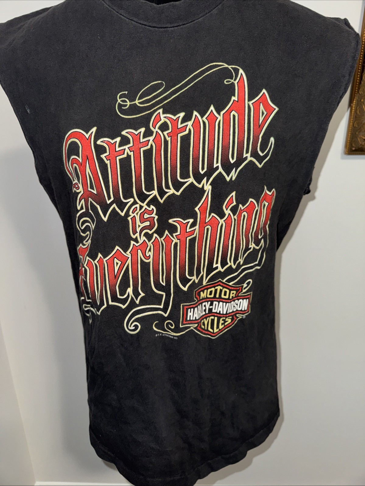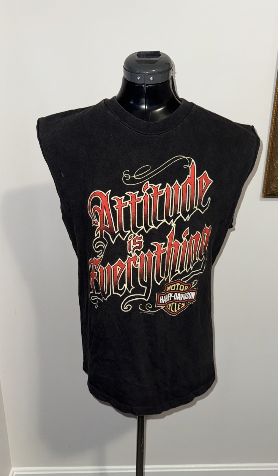 VTG Harley Davidson Attitude Is Everything Black Cut sleeveless T shirt Men s M