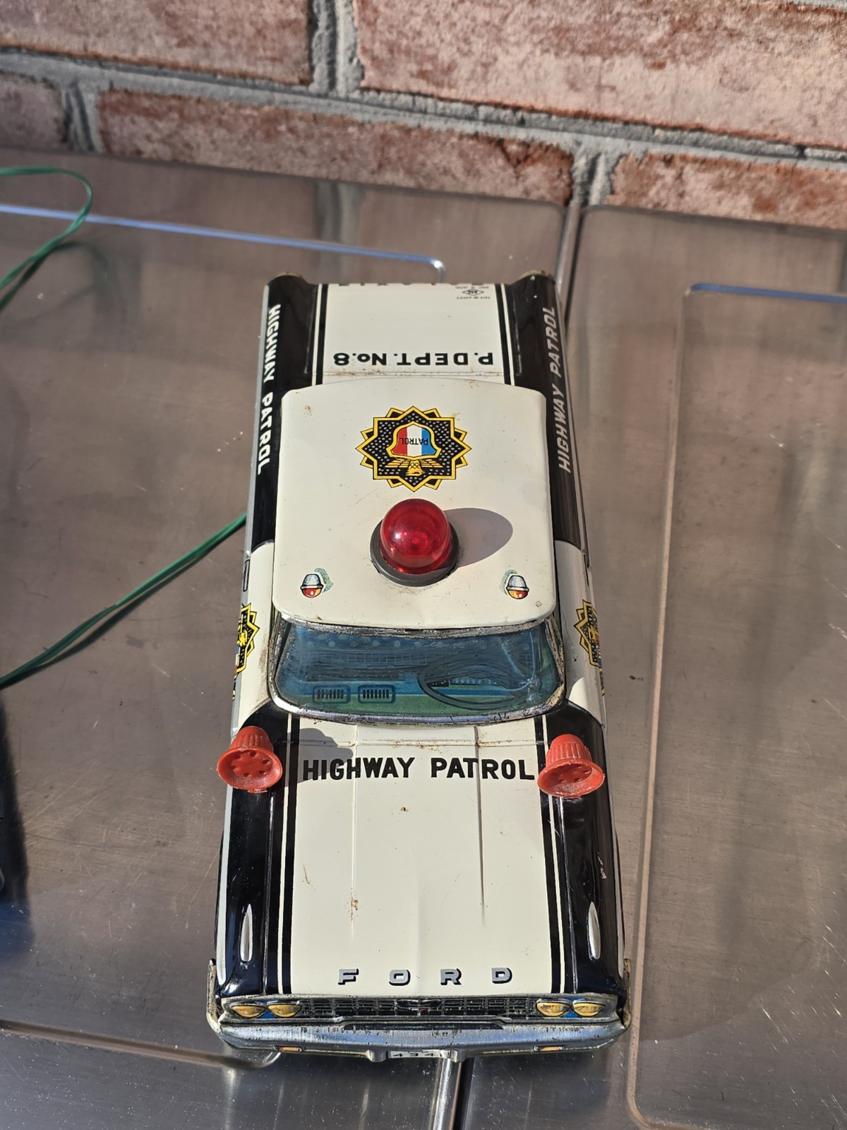 ASC Japan Ford Galaxie Highway Patrol Tin Litho Police Car Toy - Working
