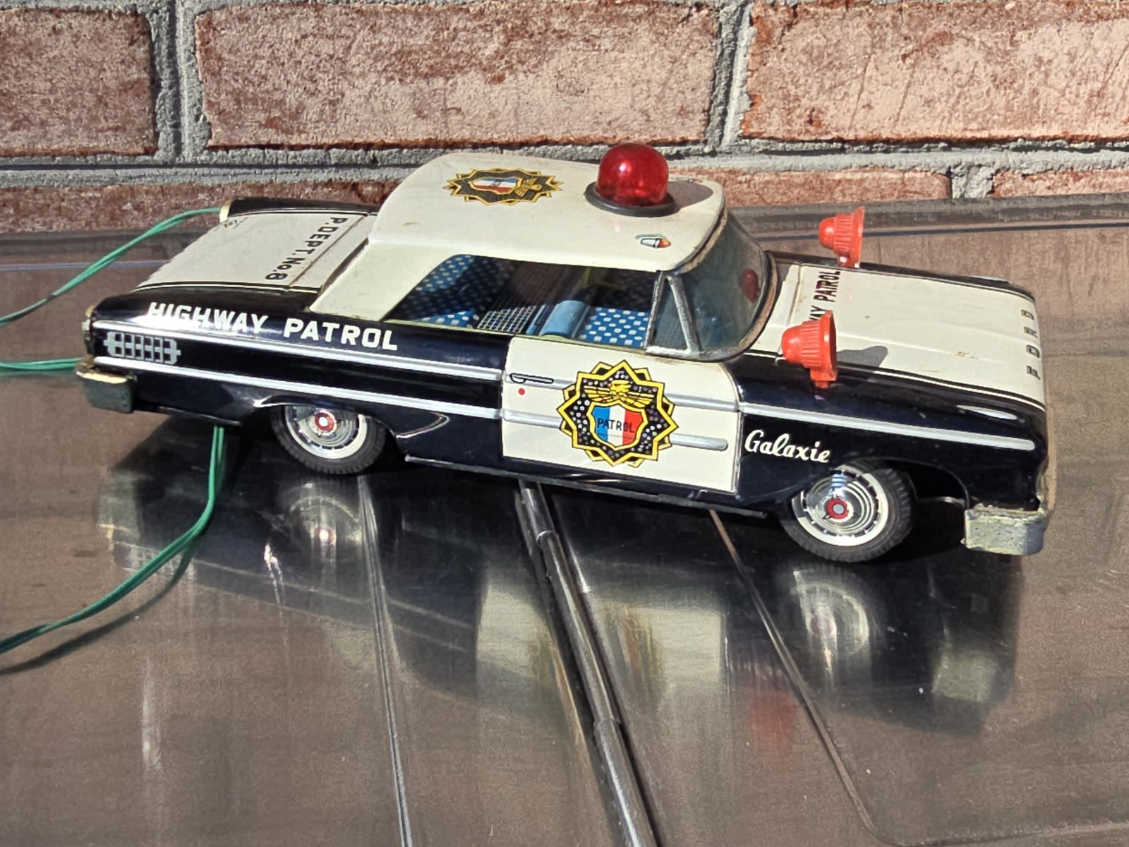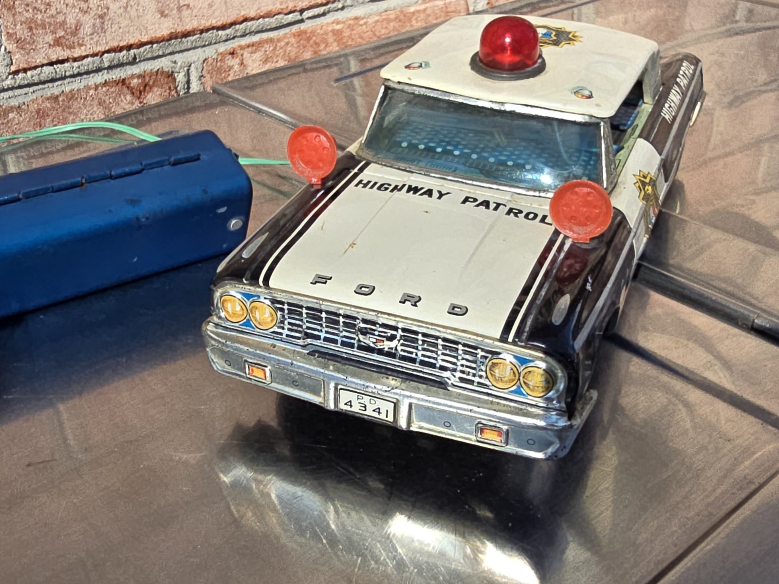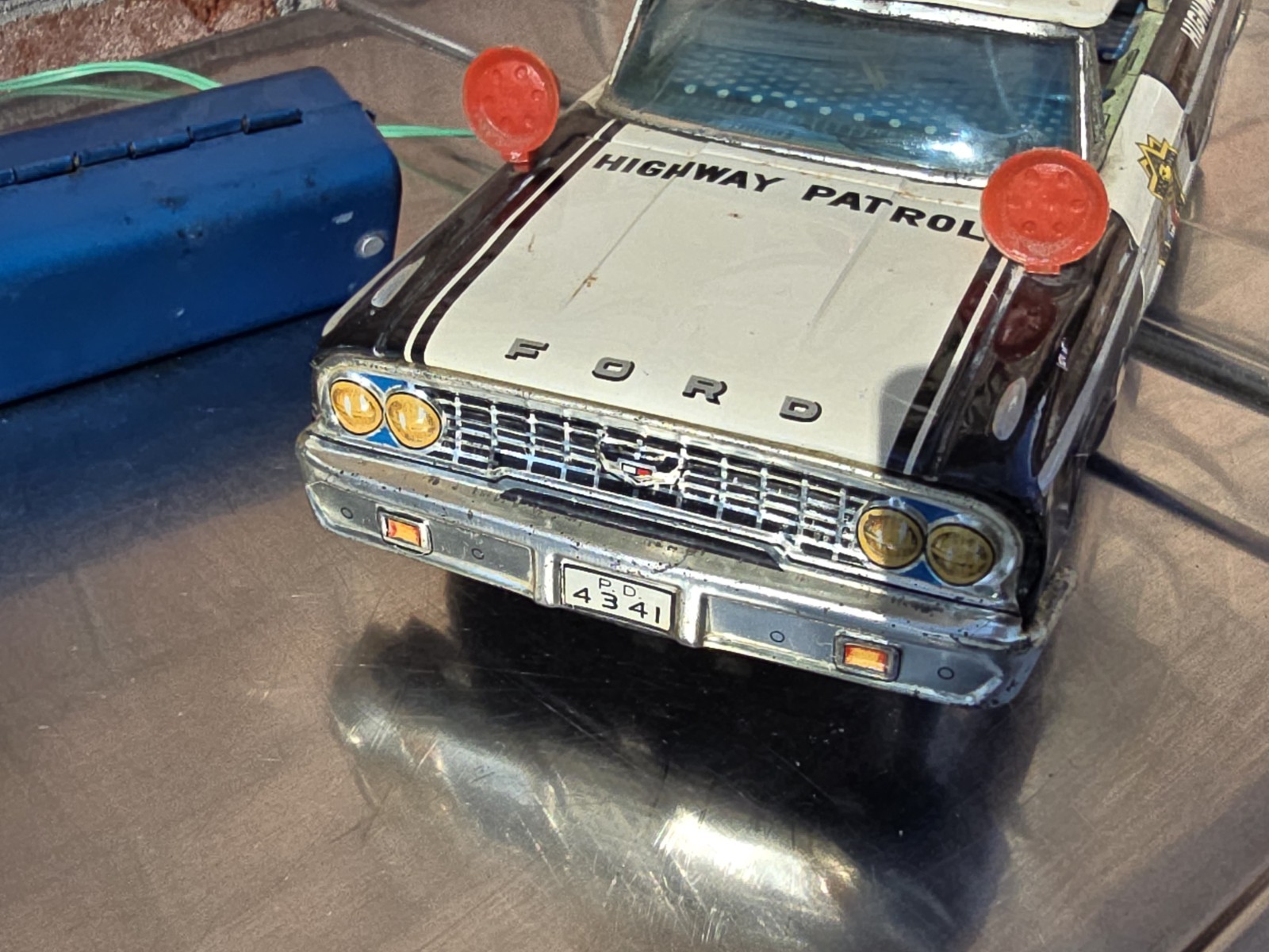 как выглядит ASC Japan Ford Galaxie Highway Patrol Tin Litho Police Car Toy - Working фото