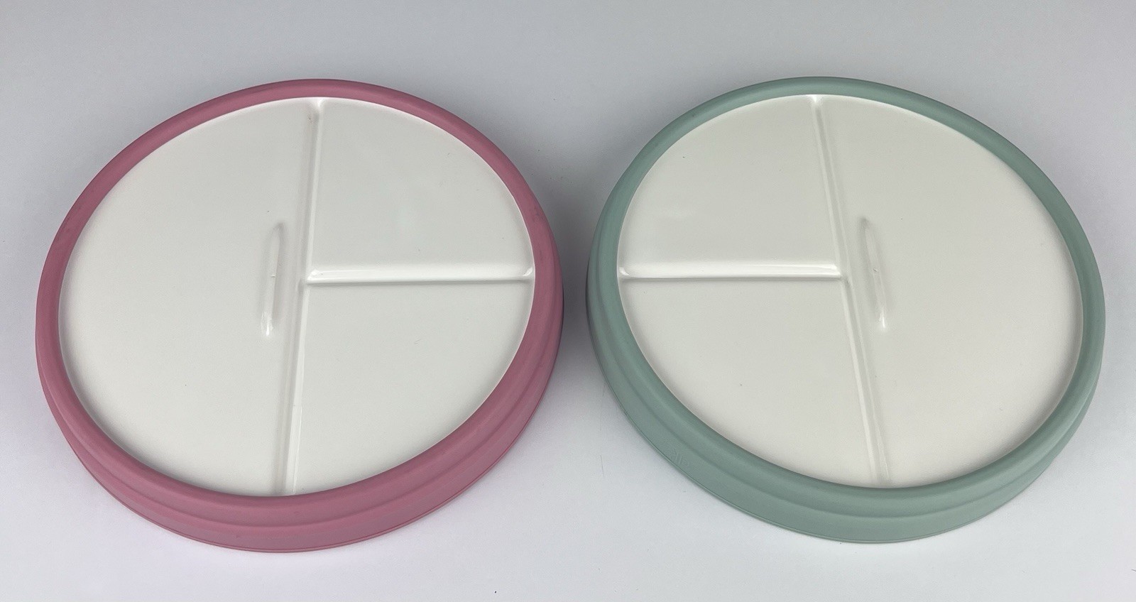 2 Elk and Friends Kids Set 7.8 in. Porcelain Plates Pink Green Silicone Sleeves