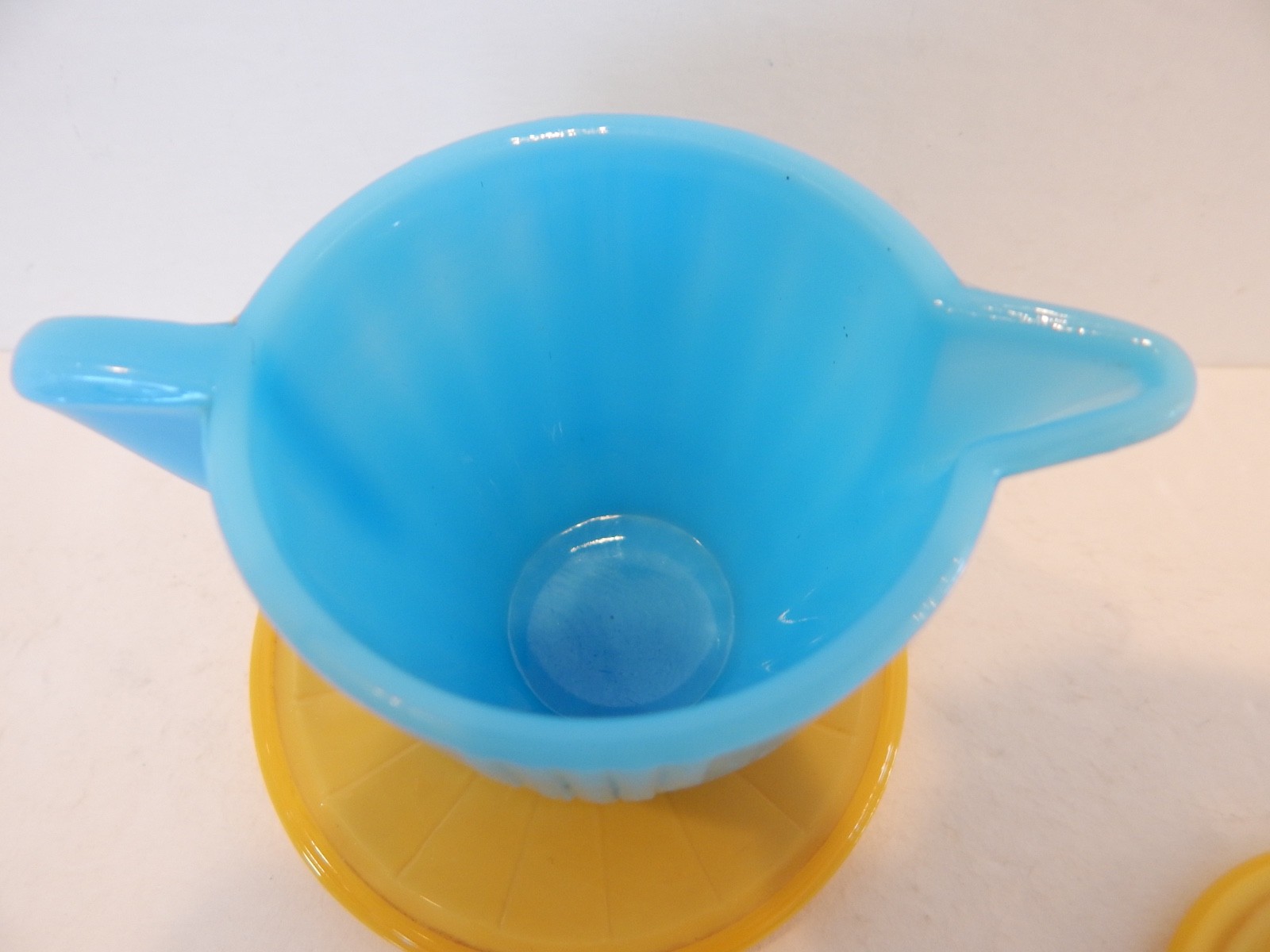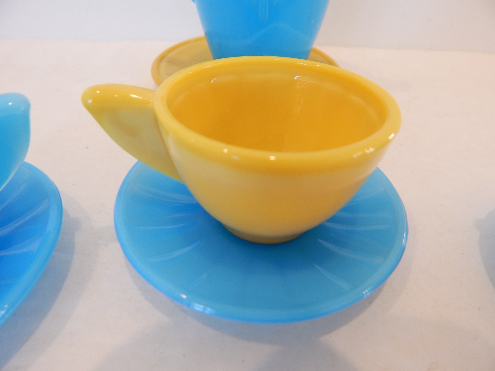 как выглядит Akro Agate Turquoise Yellow Childs Tea Set 9 Pieces фото