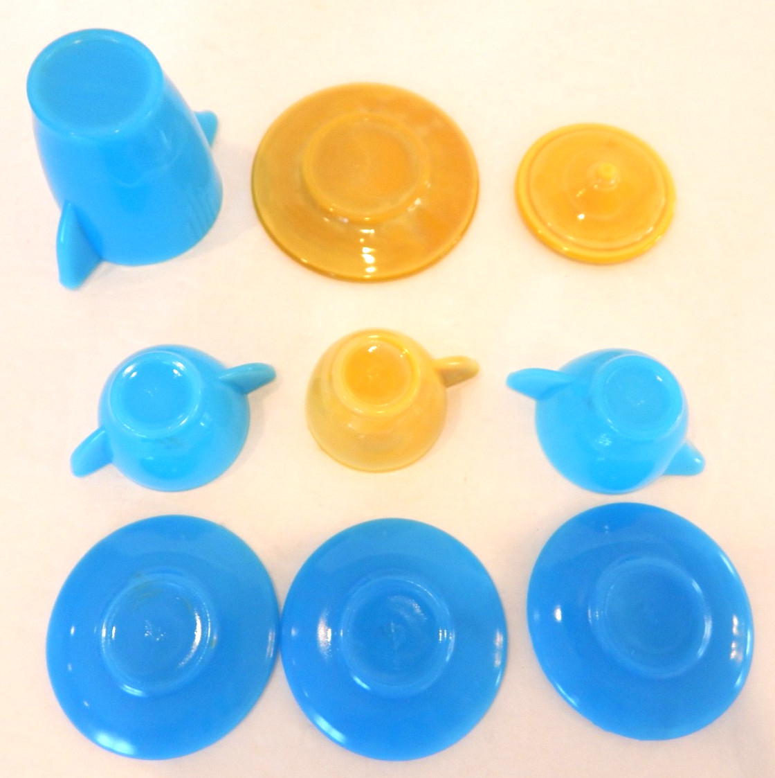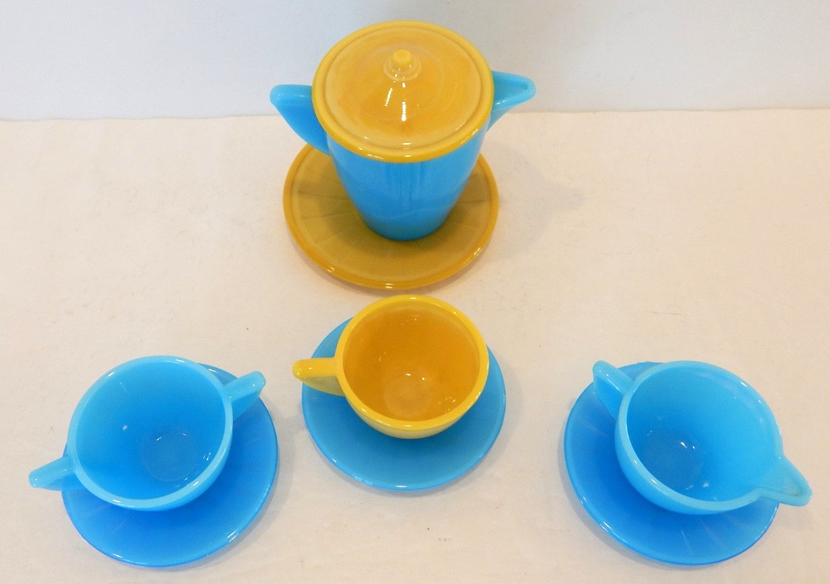 Akro Agate Turquoise Yellow Child's Tea Set 9 Pieces
