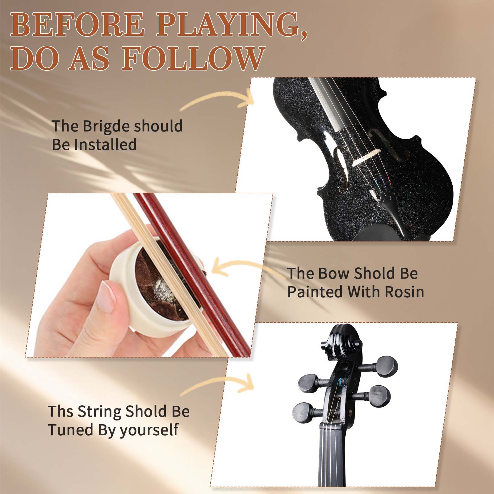 Full size 4/4 Acoustic Violin Set Beginner BassWood Violin Starter Kit Black