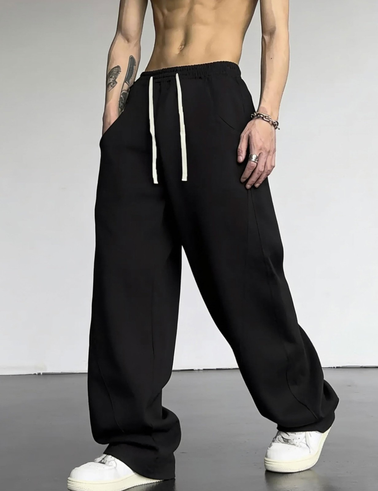 Mens Straight Leg Sweatpants Elastic Waist Drawstring Track Pants Loose Baggy...