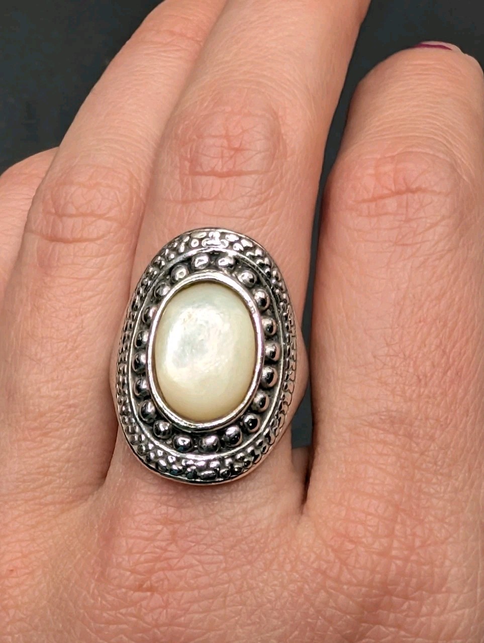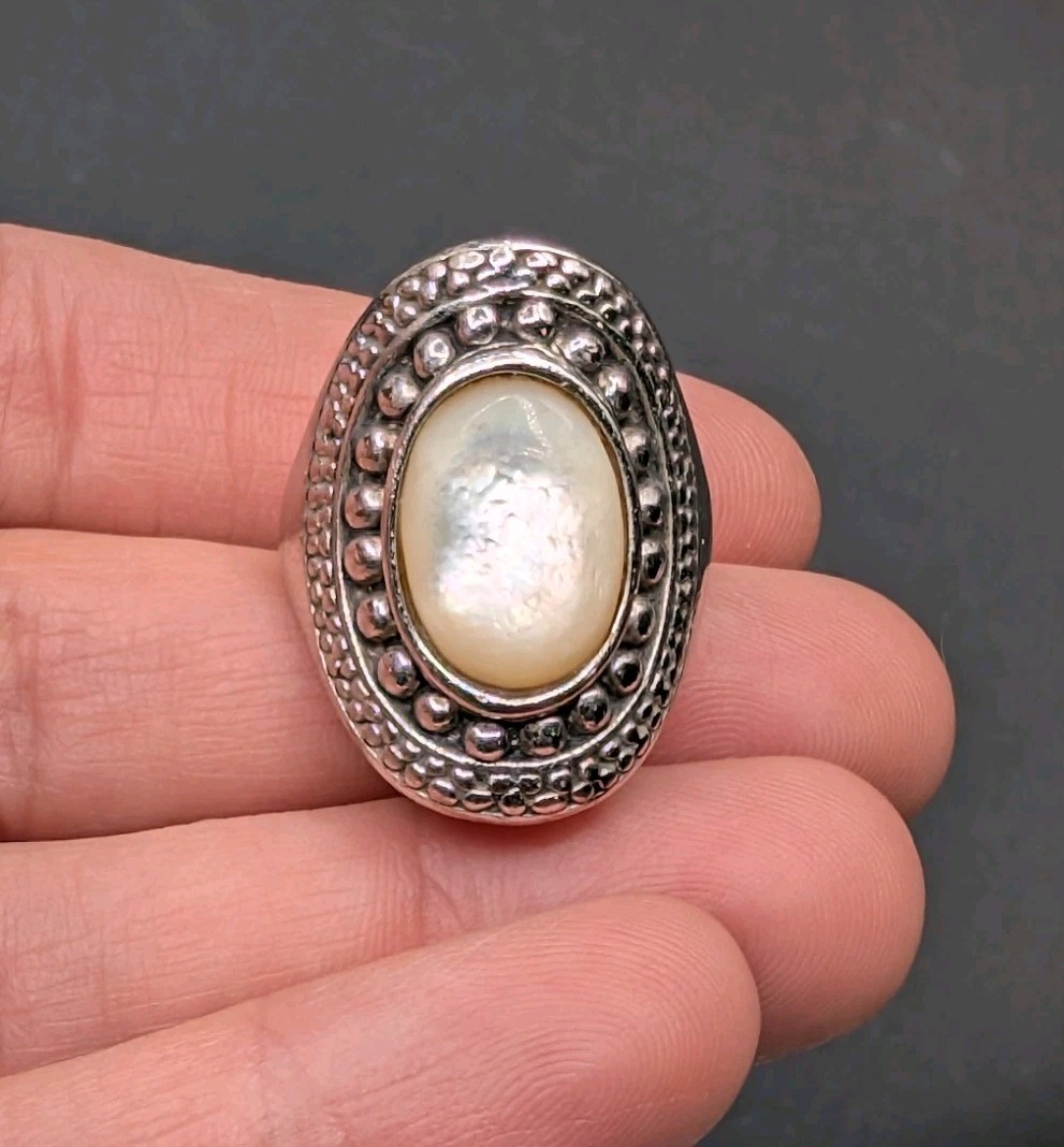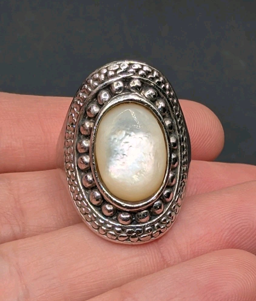Sterling Silver 925 Mother Of Pearl MOP Shell Oval Ring Size 7