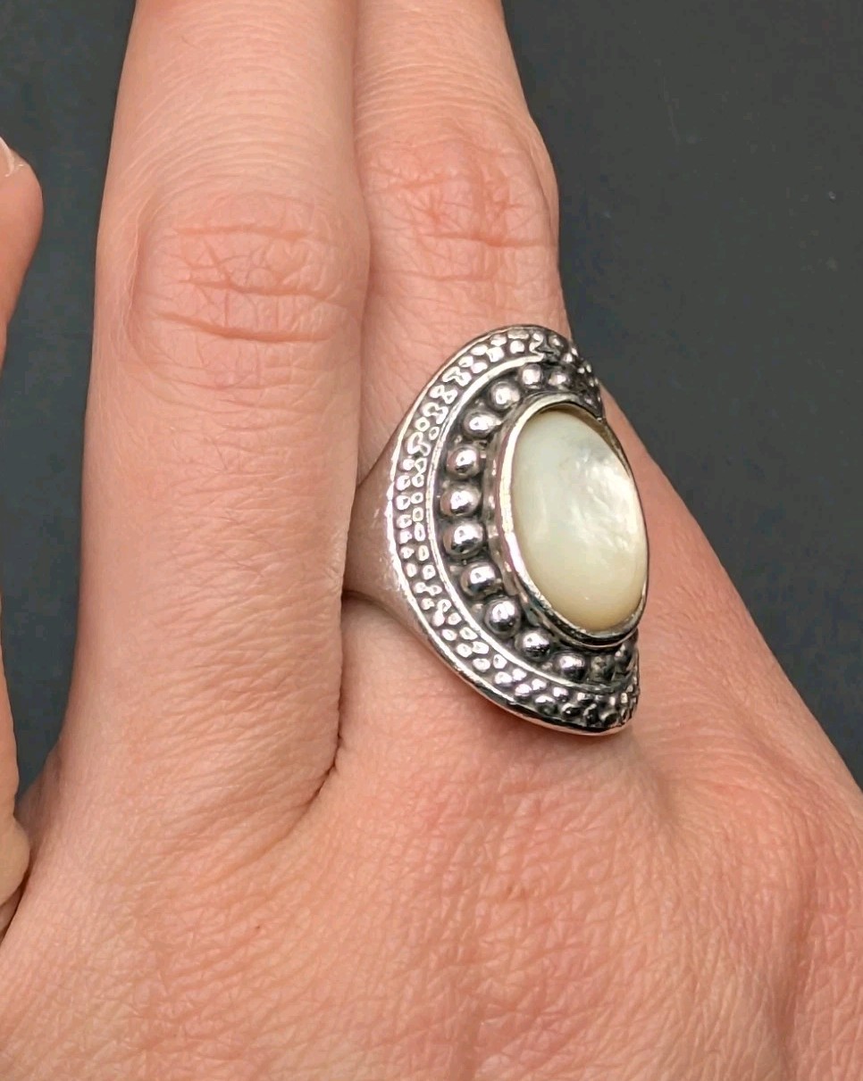как выглядит Sterling Silver 925 Mother Of Pearl MOP Shell Oval Ring Size 7 фото