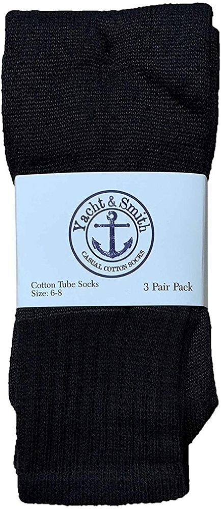 48 PK of Yacht Smith Wholesale Kids Tube Socks, 6-8 Black - Boys Crew Sock
