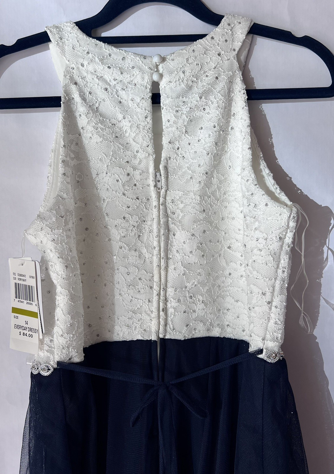 как выглядит Girls Speechless High Low Lace Dress SZ 14 Ivory/Navy NWT фото