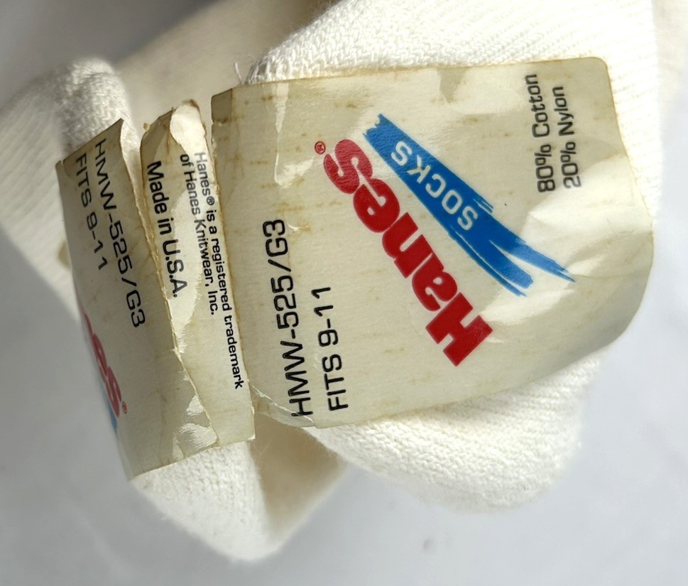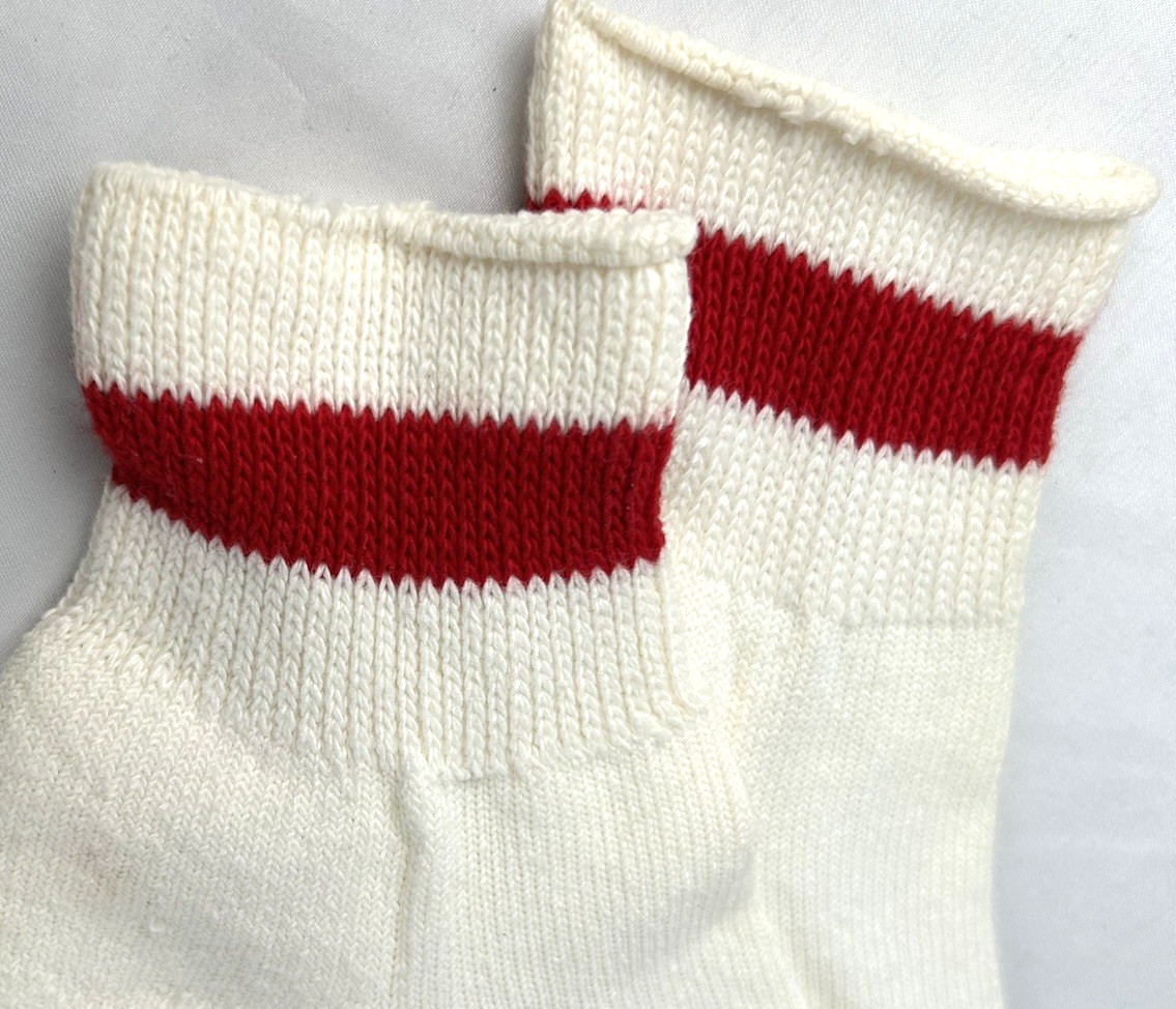 NWT Vintage Hanes Red Striped Ankle Socks Mens 9-11 Short White