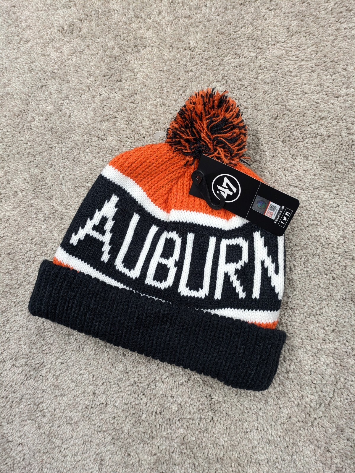 Auburn Tigers Bering Knit Beanie 47 Pom One Size Orange Striped Football NWT