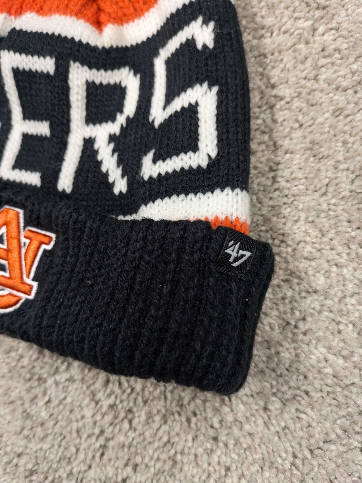 как выглядит Auburn Tigers Bering Knit Beanie 47 Pom One Size Orange Striped Football NWT фото