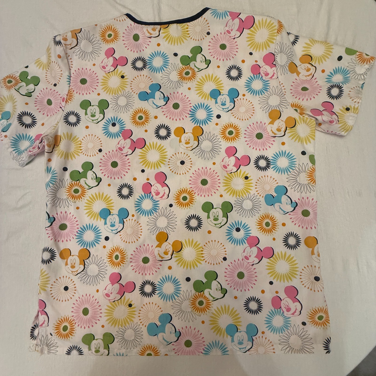 как выглядит Disney Uniform Scrub Top Mickey Mouse Pastel Print Medium Preowned X-36 фото