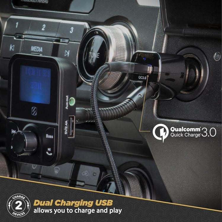 Scosche SBTFM1-XCES0 Bluetooth 5.0 FM Transmitter w/ Dual USB Charger Ports, LCD