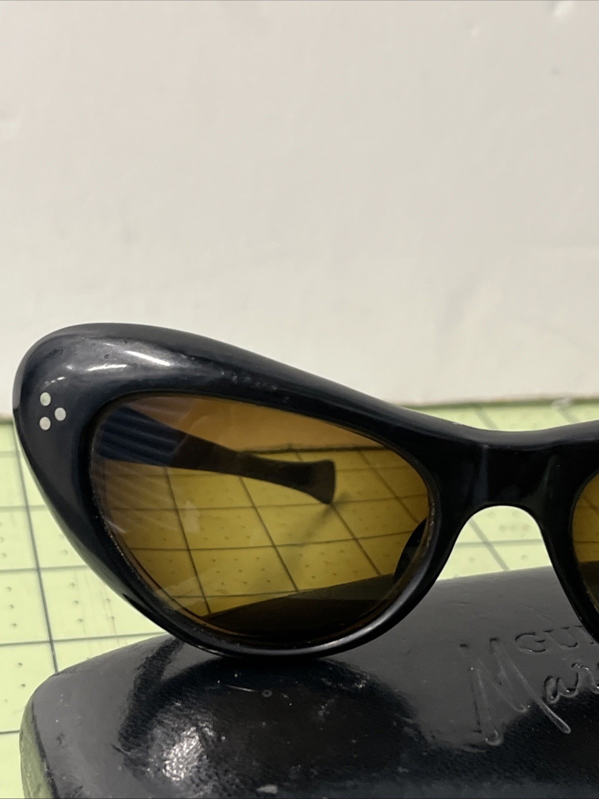как выглядит Vintage 50 s/ 60 s Acetate Cat Eye Sunglasses Christian Leroy Italy 3 Dot Rivets фото