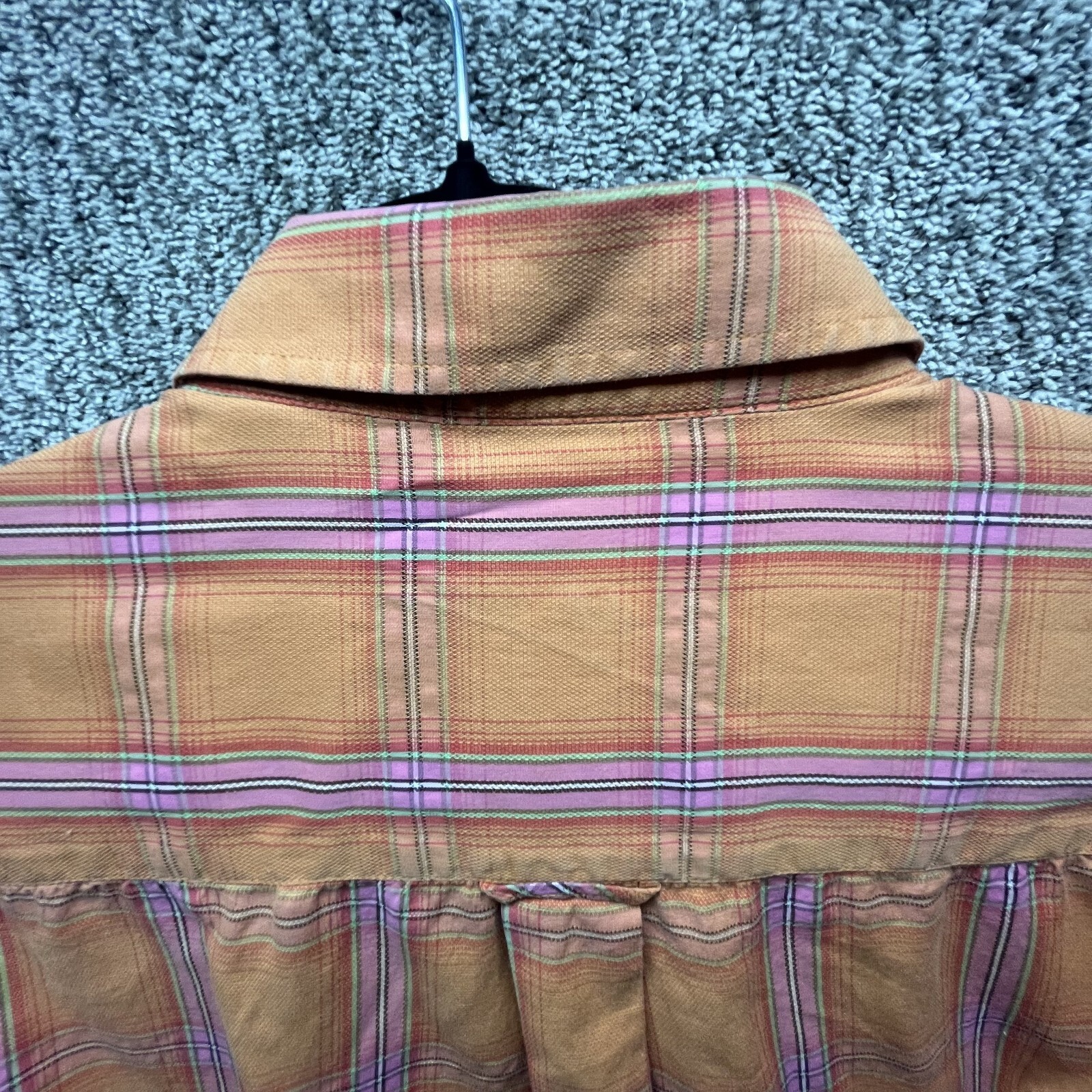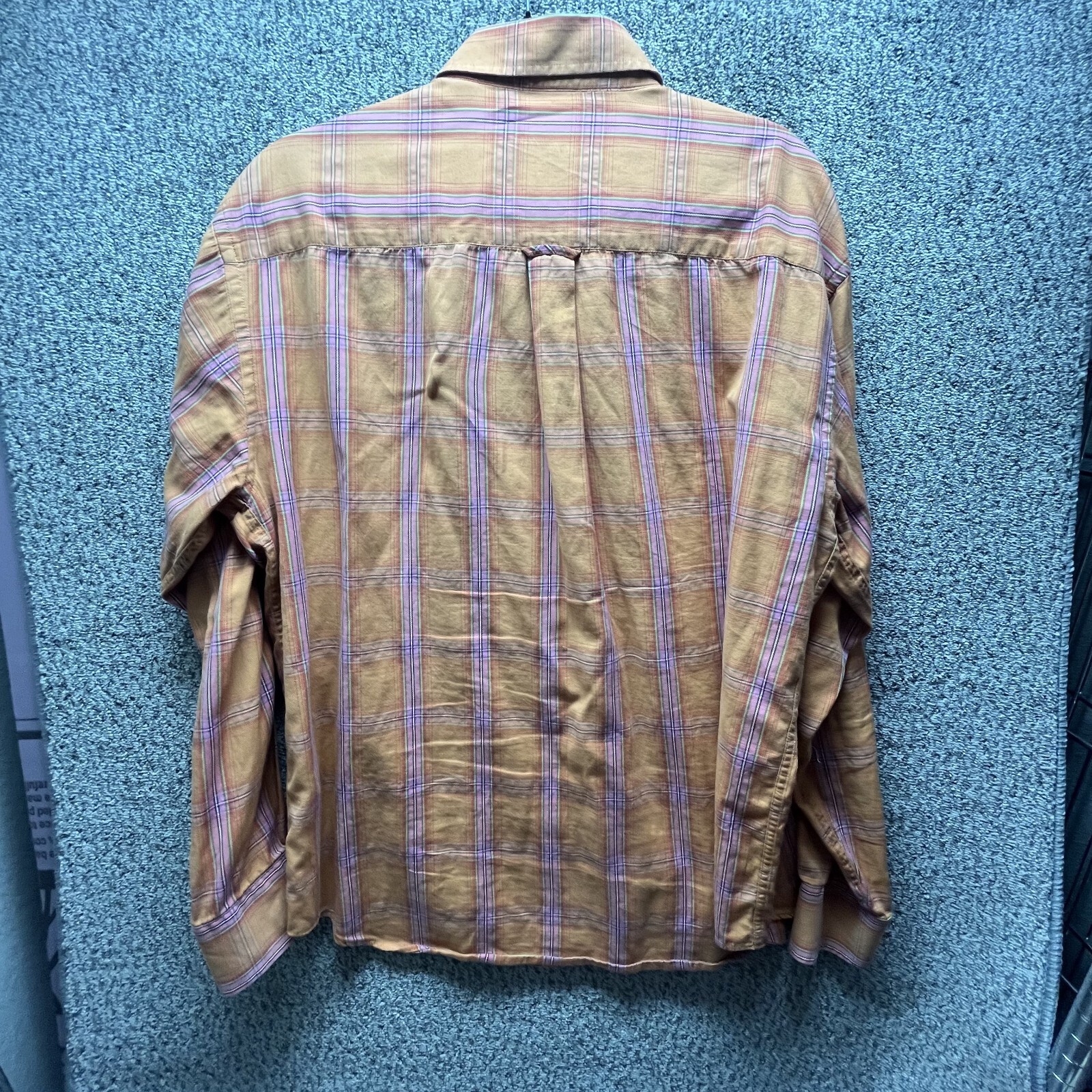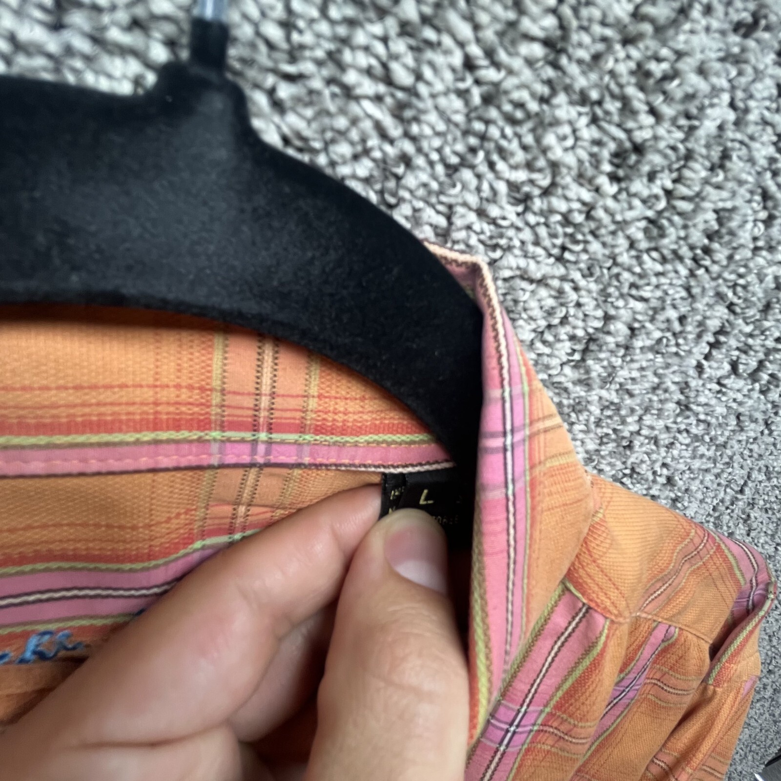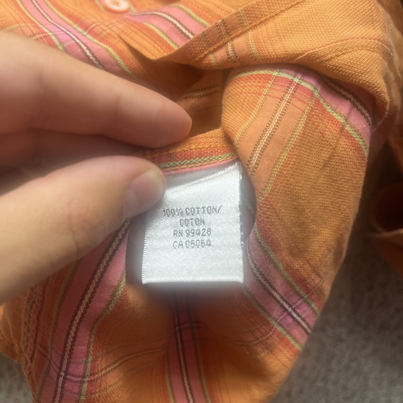 как выглядит Bugatchi Uomo Mens L Orange Striped Cotton Long Sleeve Dress Shirt Cuff Flower фото